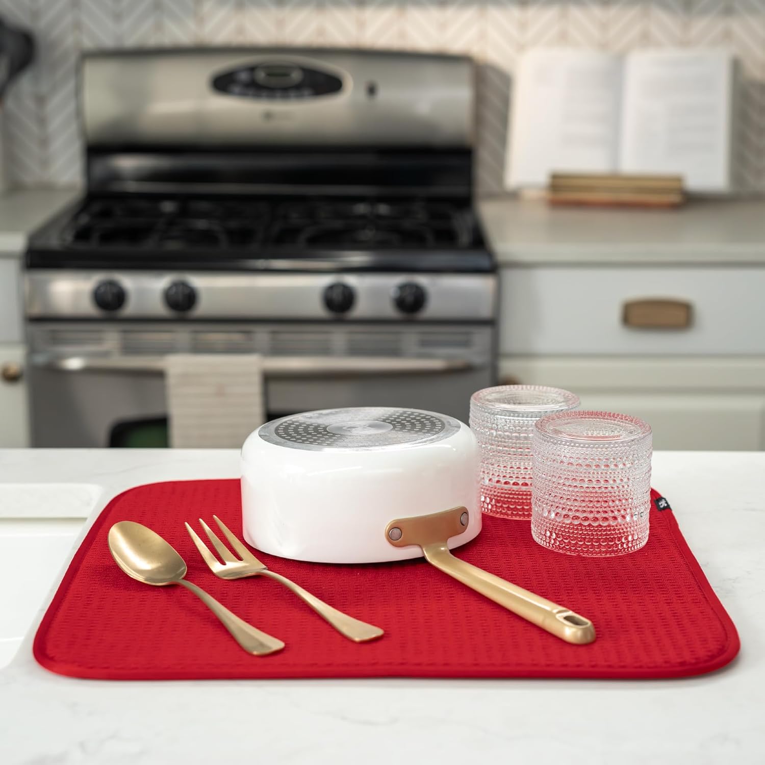 - Dish drying mats for kitchen counter are reusable, machine washable, and easy to store for kitchen organization; durable construction will not chip or break like a stone dish drying mat for kitchen