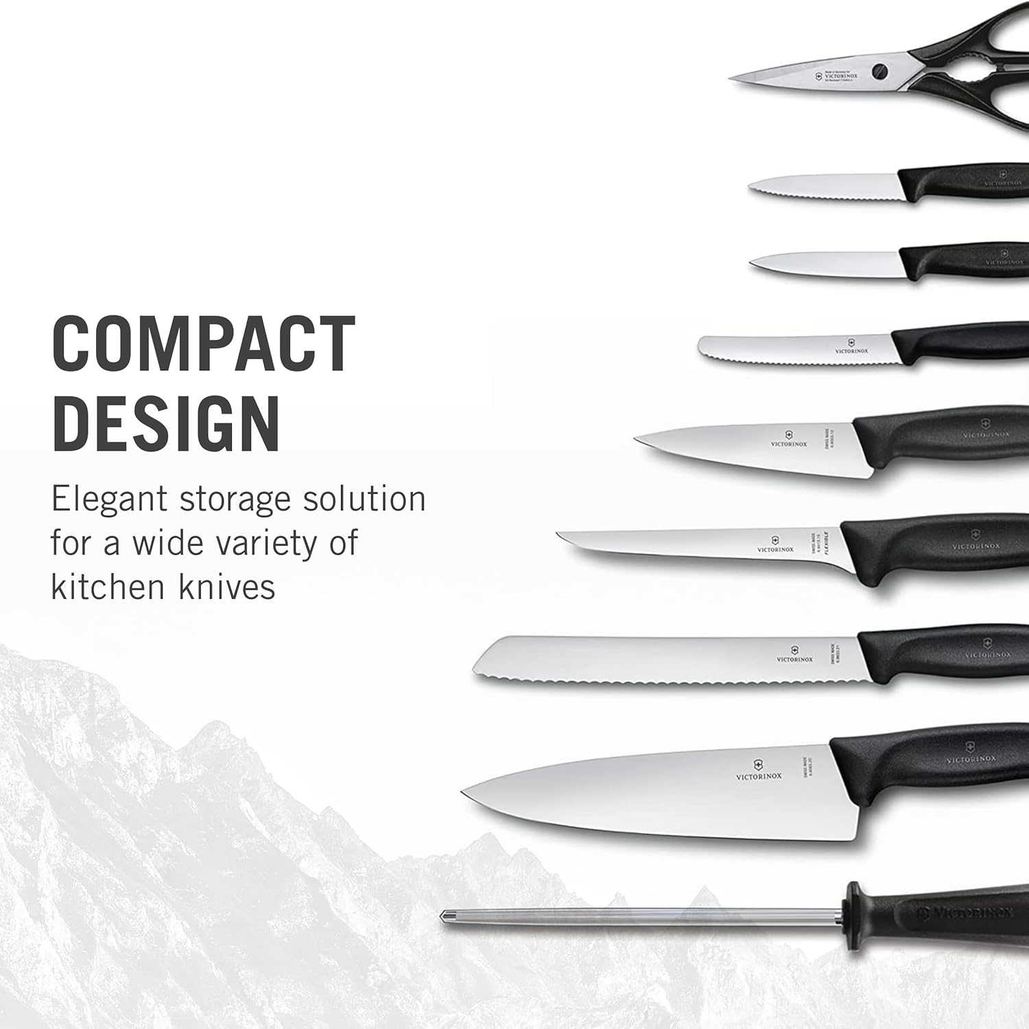 Victorinox Swiss Classic Knife Block - Kitchen Knife Set with Block for Home Essentials - Includes Chef's Knife, Santoku Knife & More - Black Handles, 15-Piece Set
