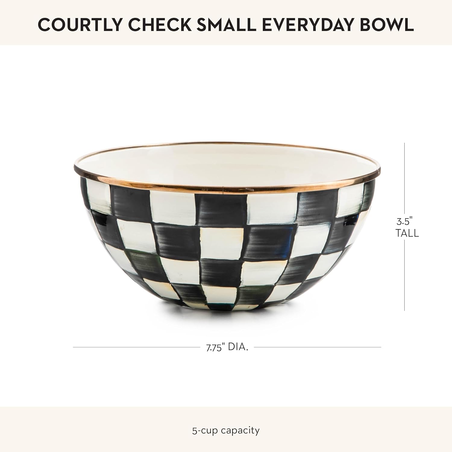 MACKENZIE-CHILDS Enamel Everyday Bowl, Serving Bowl for Entertaining, Small, Black-and-White Courtly Check, Set of 1