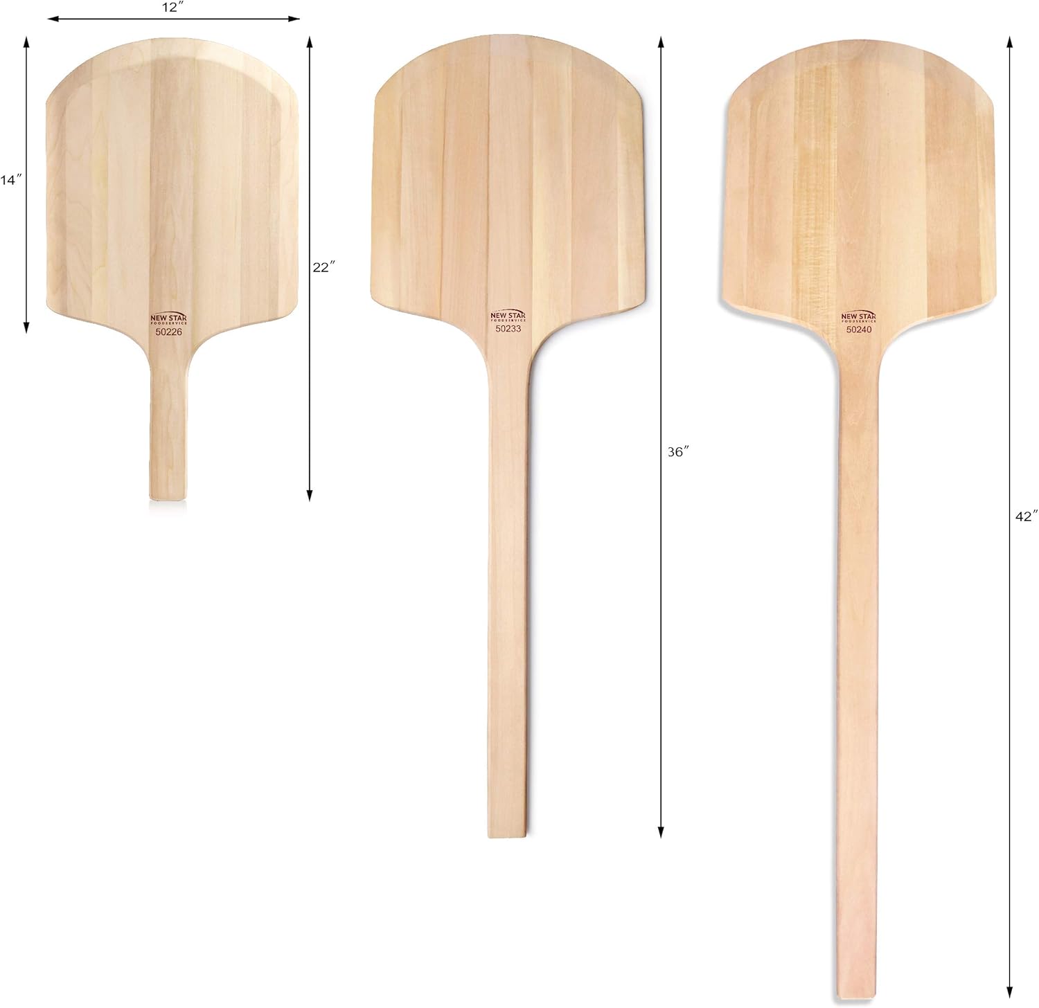 New Star Foodservice 50226 Restaurant-Grade Wooden Pizza Peel, 14" L x 12" W Plate, with 8" L Wooden Handle, 22" Overall Length