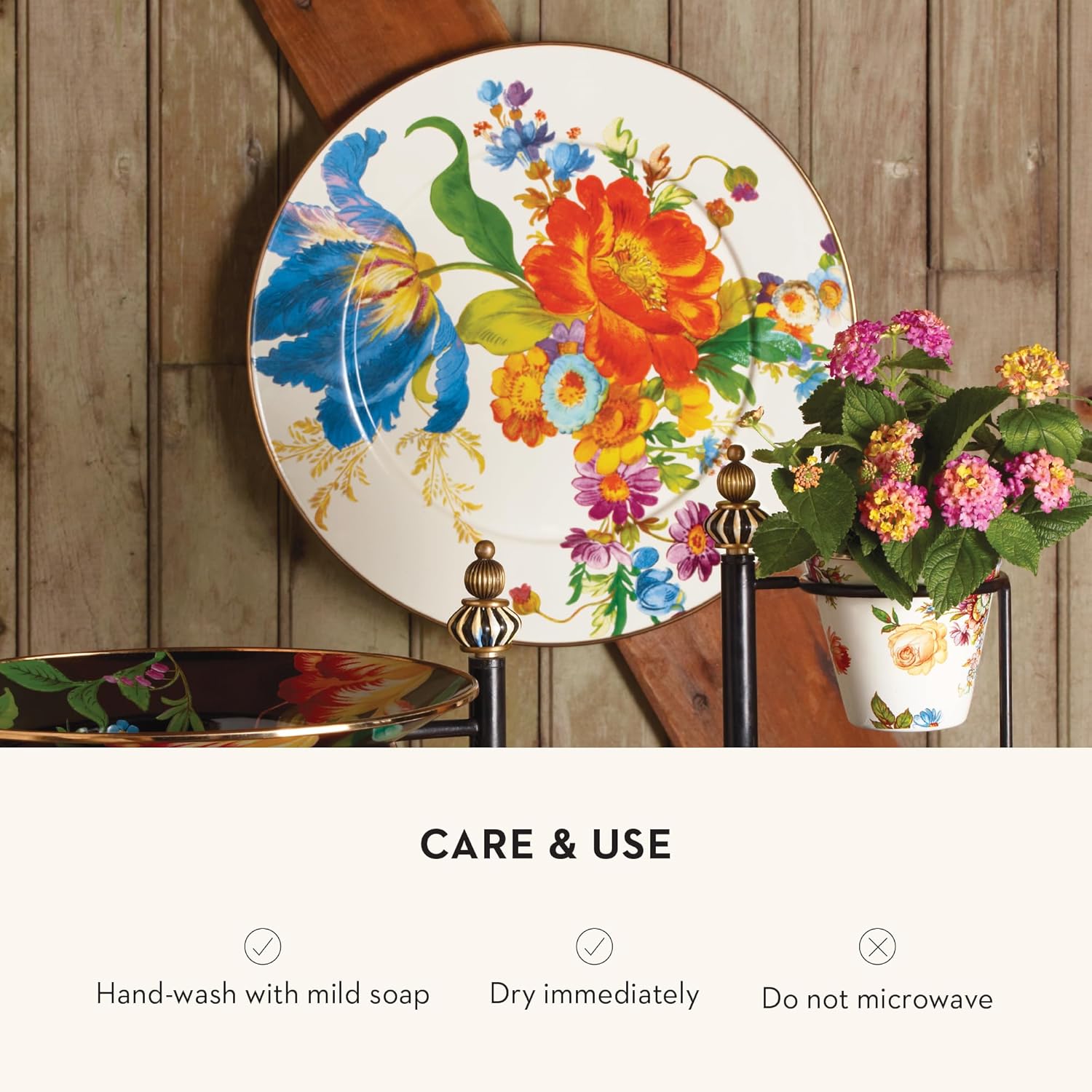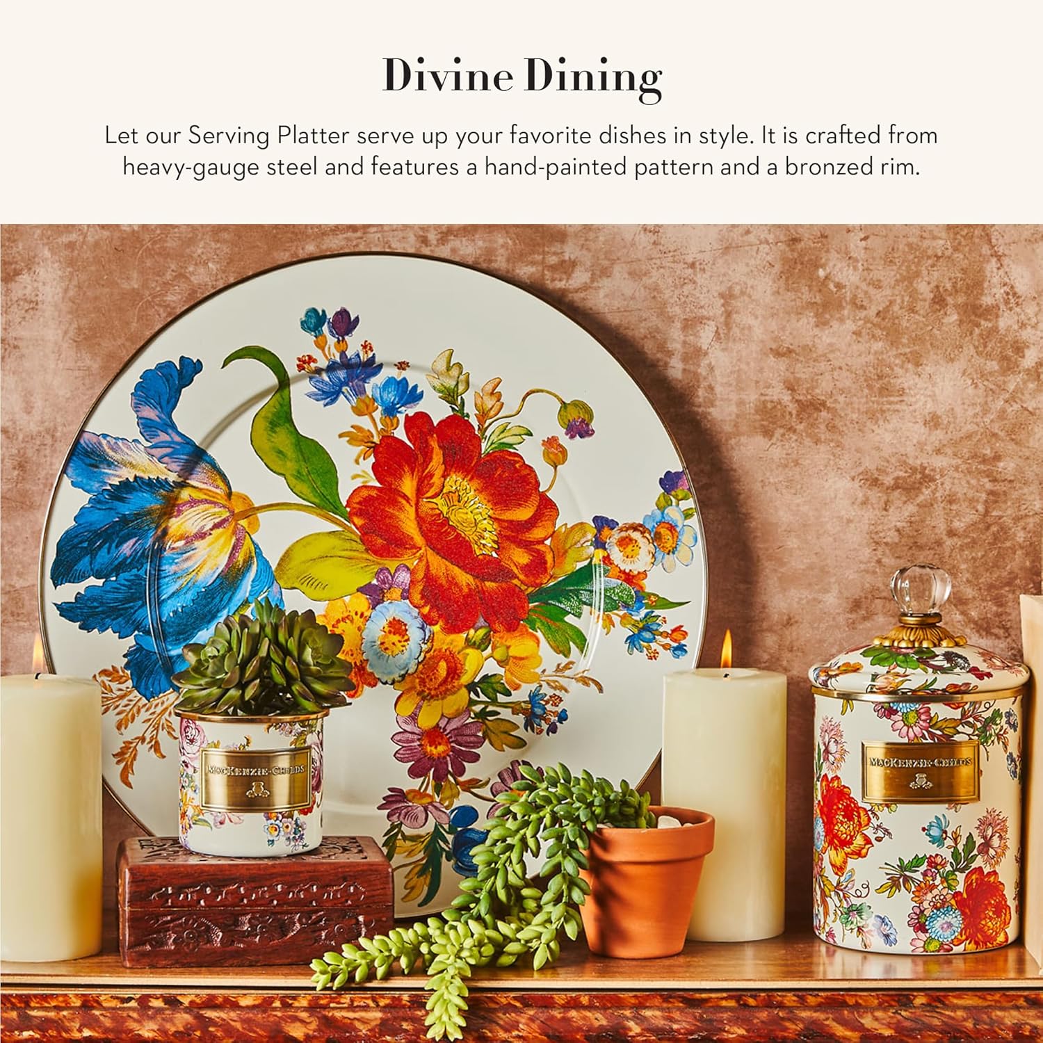 MACKENZIE-CHILDS Enamel Serving Platter, Decorative Serving Platter for Food, 16 Inches, White Flower Market