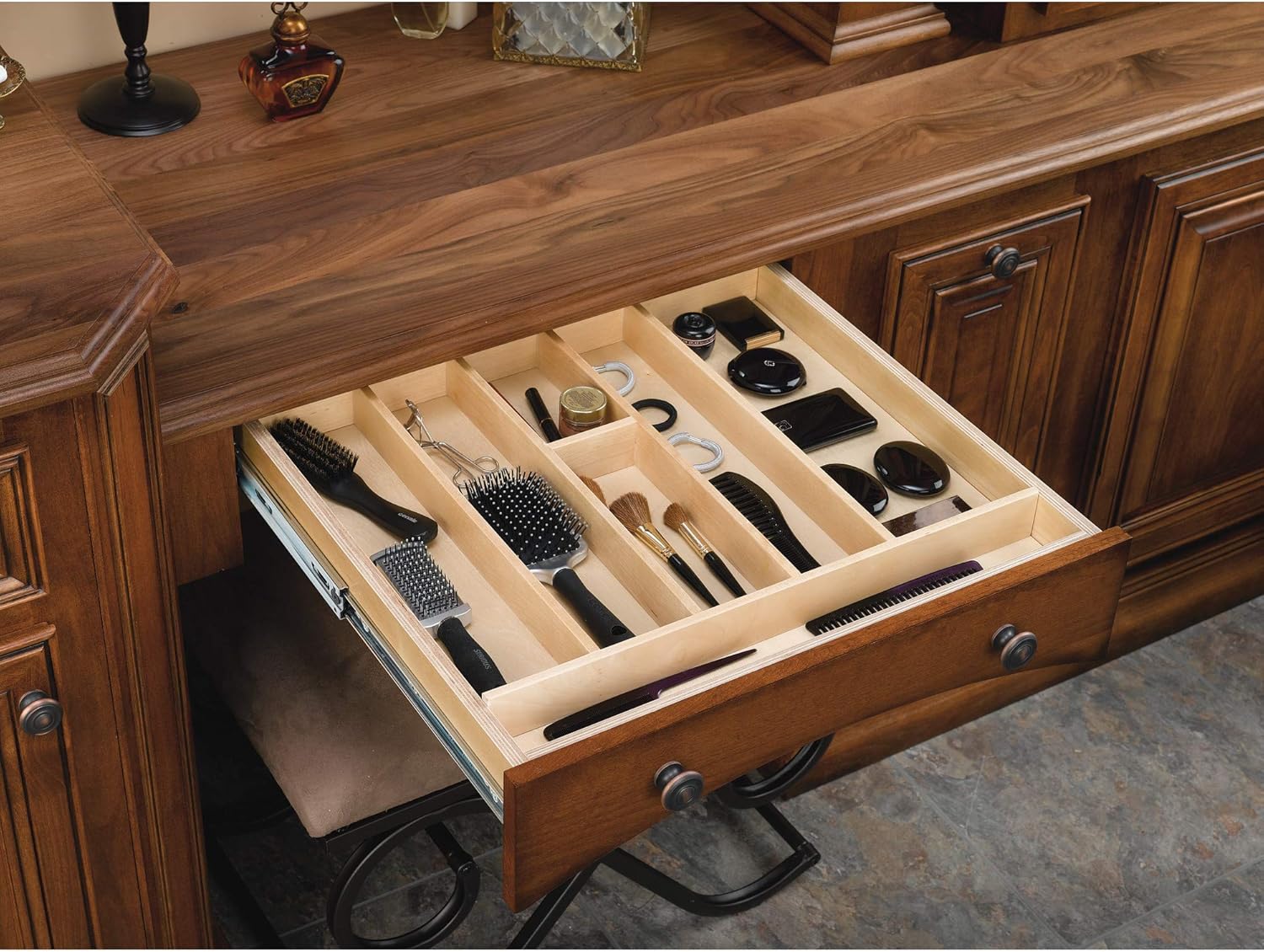 - Silverware Organizer Tray: Maximize drawer space and efficiency in the kitchen with the 7-compartment tray drawer organizer built with a classic maple hardwood