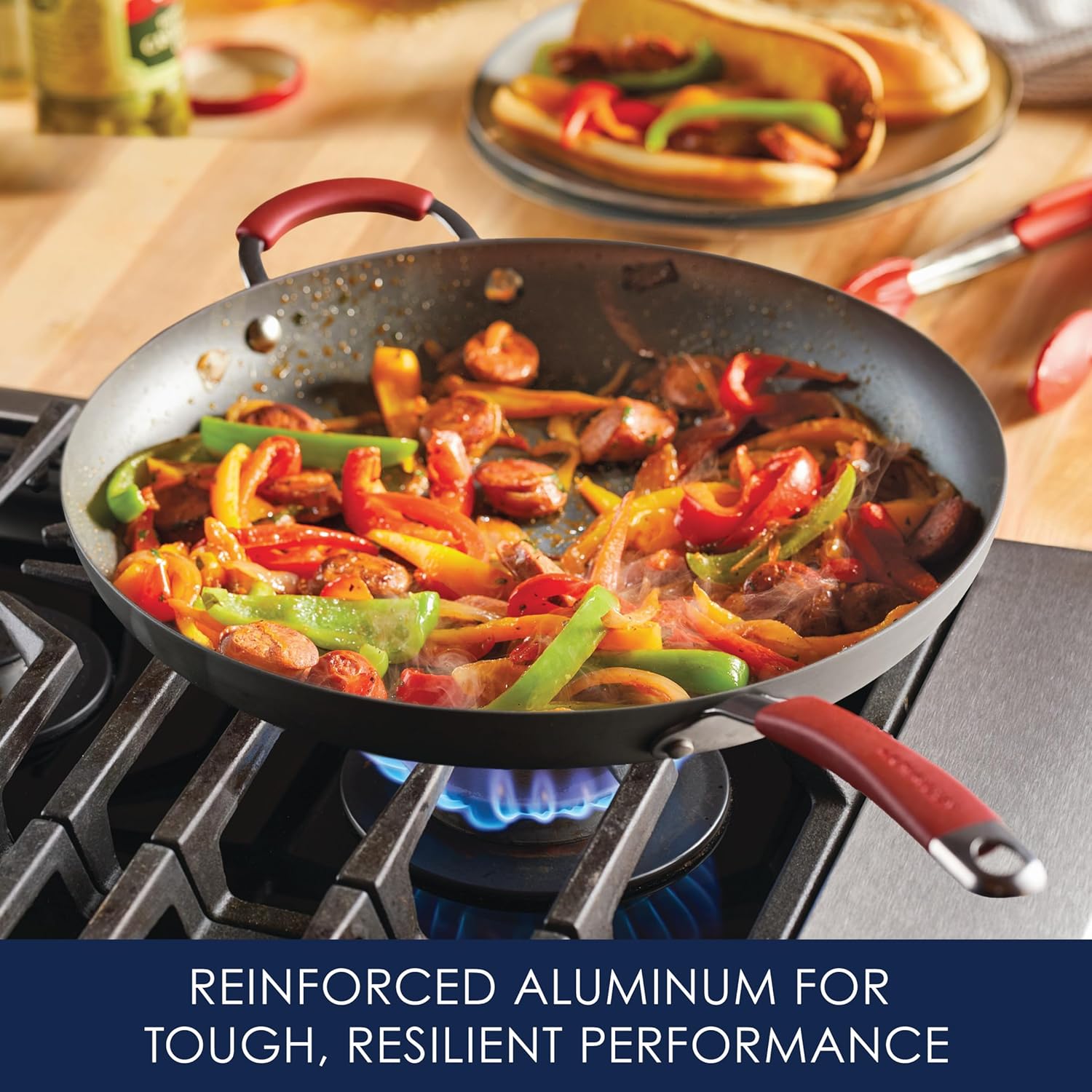 - DURABLE FRYING PAN WITH EVEN HEAT DISTRIBUTION: Frying pan features durable hard-anodized aluminum construction that heats quickly and evenly