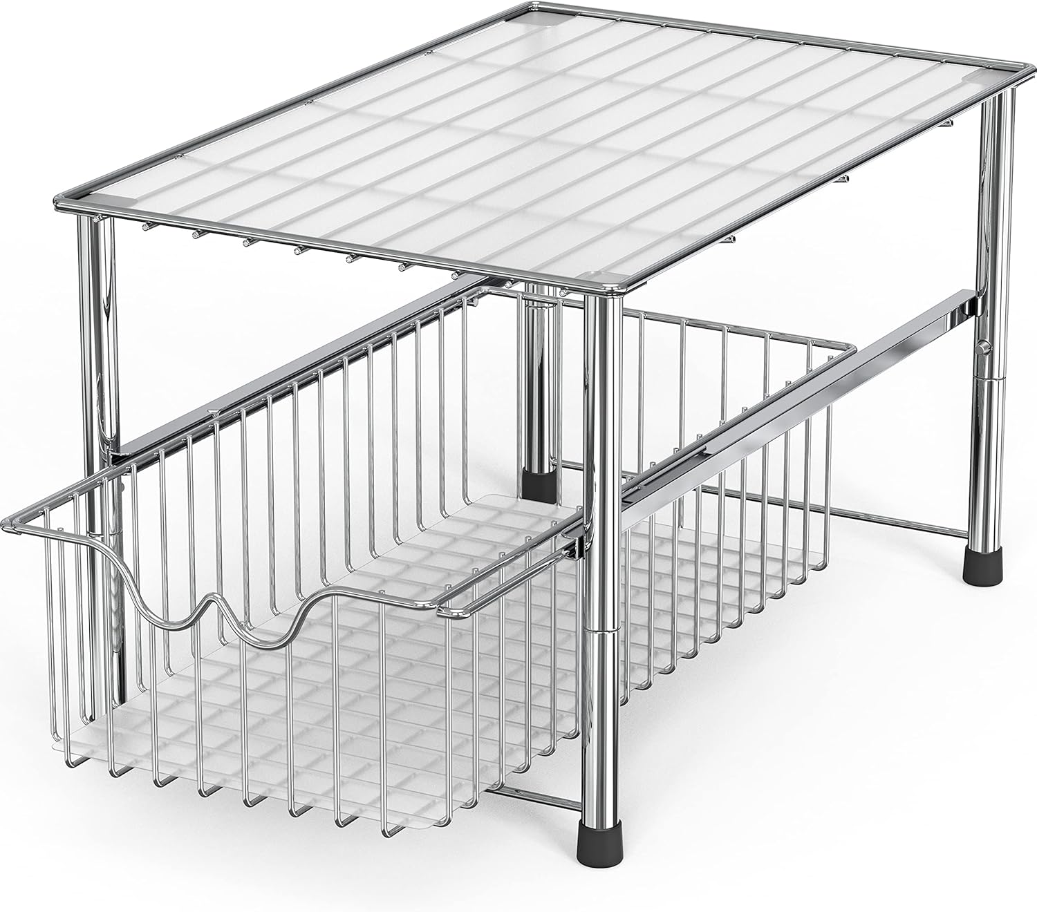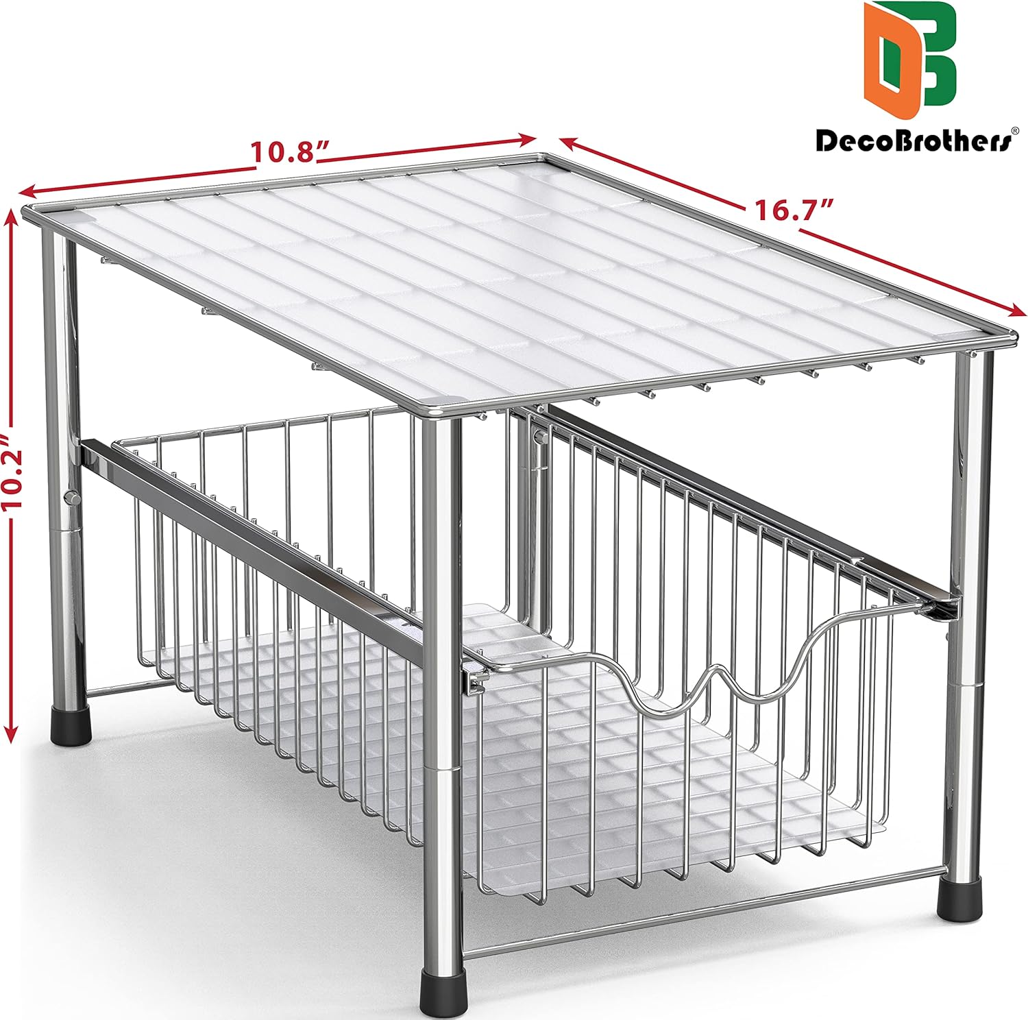 DecoBrothers Stackable Under Sink Organizer with Sliding Basket, Chrome