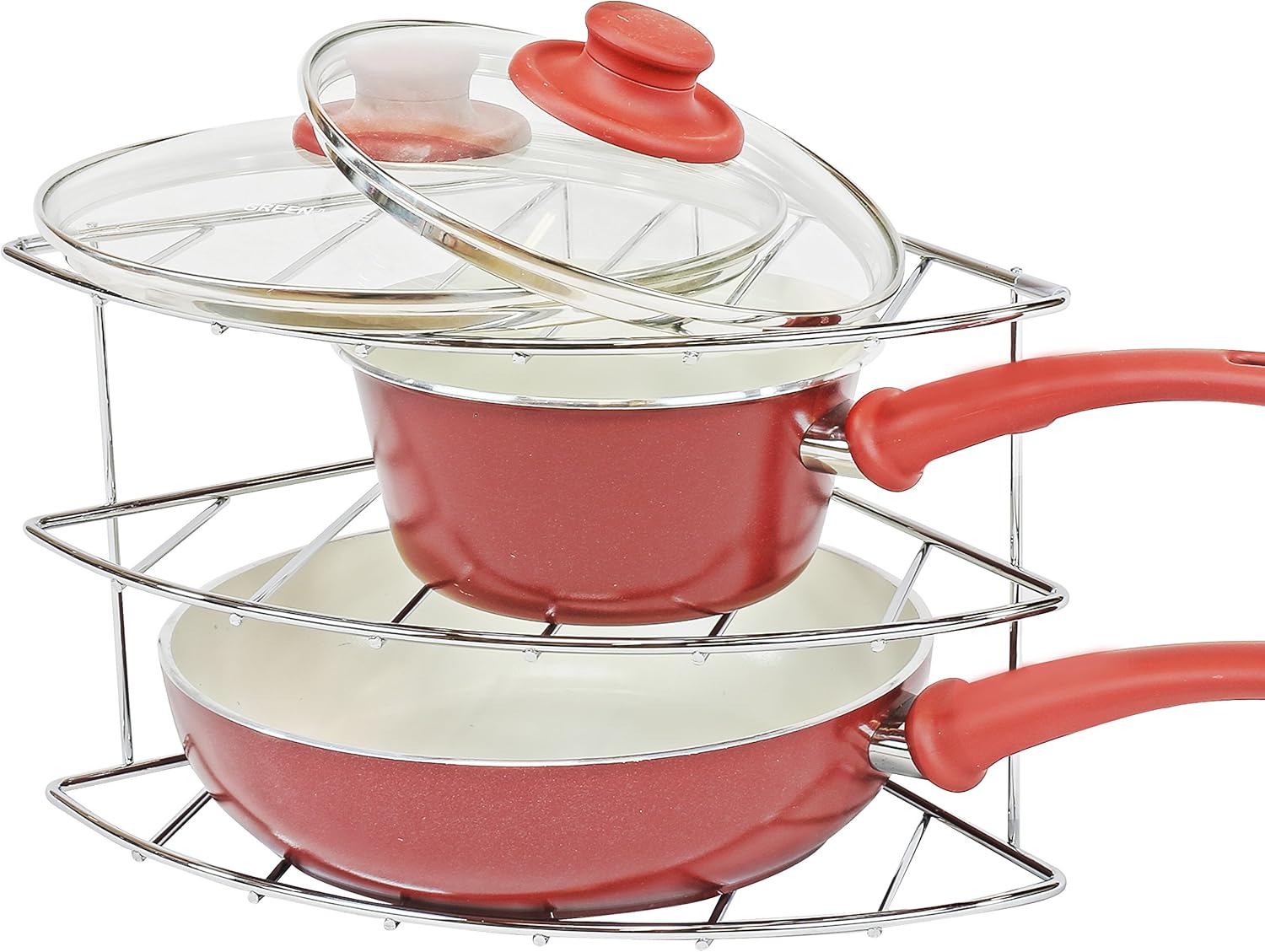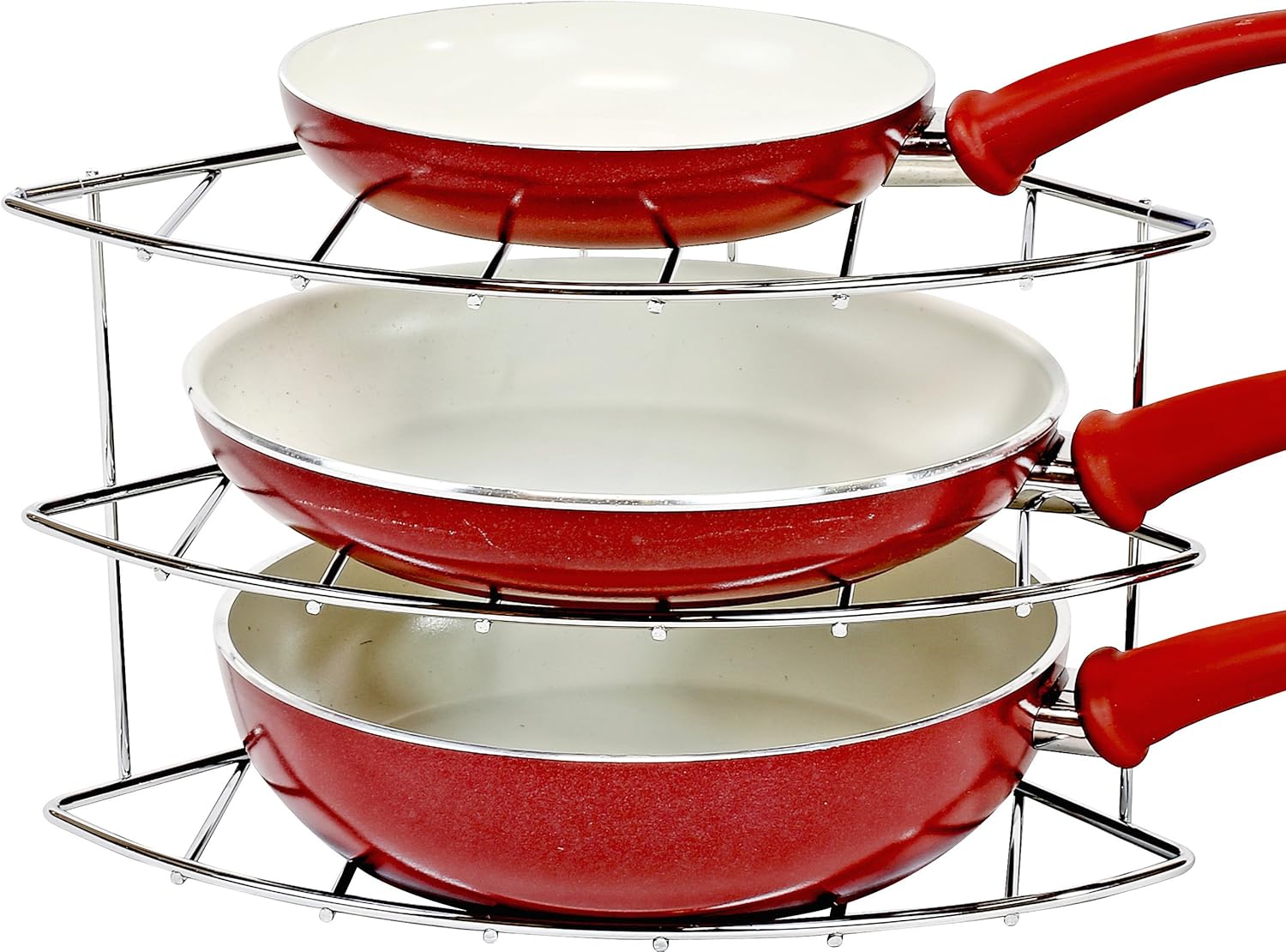 - 3 Tier Shelf to store 3 Pans, Lids, or dishware in your cabinet.