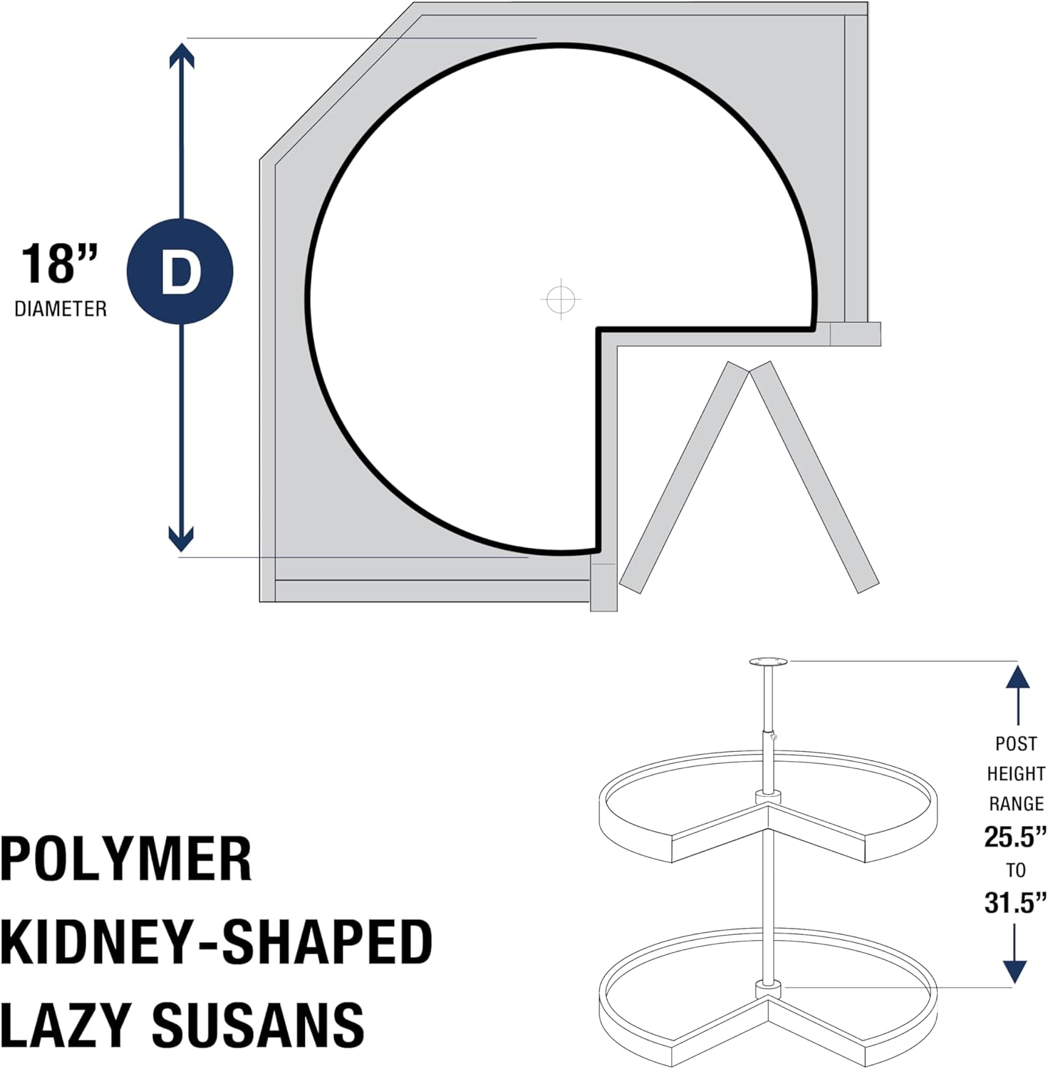 Knape & Vogt Plastic Lazy Susan Organizer, 2-Tier Lazy Susan for Cabinet, Kidney-Shaped 18-Inch Polymer 360º Turntable, White