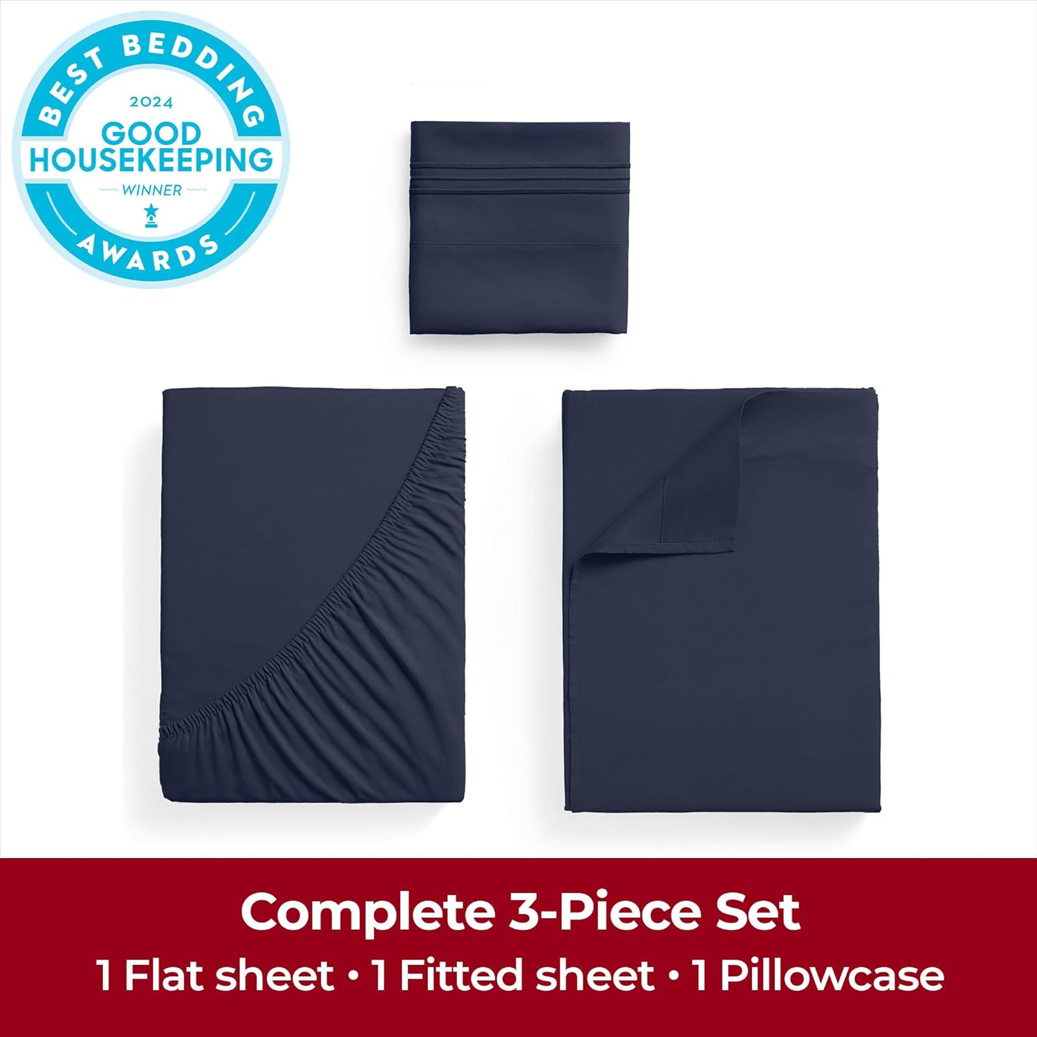 Mellanni Twin Sheets Set - 3 PC Iconic Collection Bedding - Hotel Luxury, Extra Soft, Cooling Bed Sheets - Wrinkle, Fade, Stain Resistant (Twin, Navy Blue)