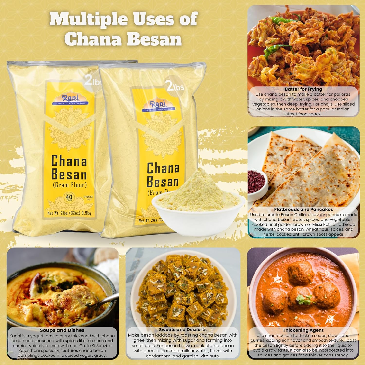 Rani Chana Besan (Chickpeas Flour, Gram) 32oz (2lbs) 908g ~ All Natural | Vegan | Gluten Friendly | NON-GMO | Kosher | Indian Origin