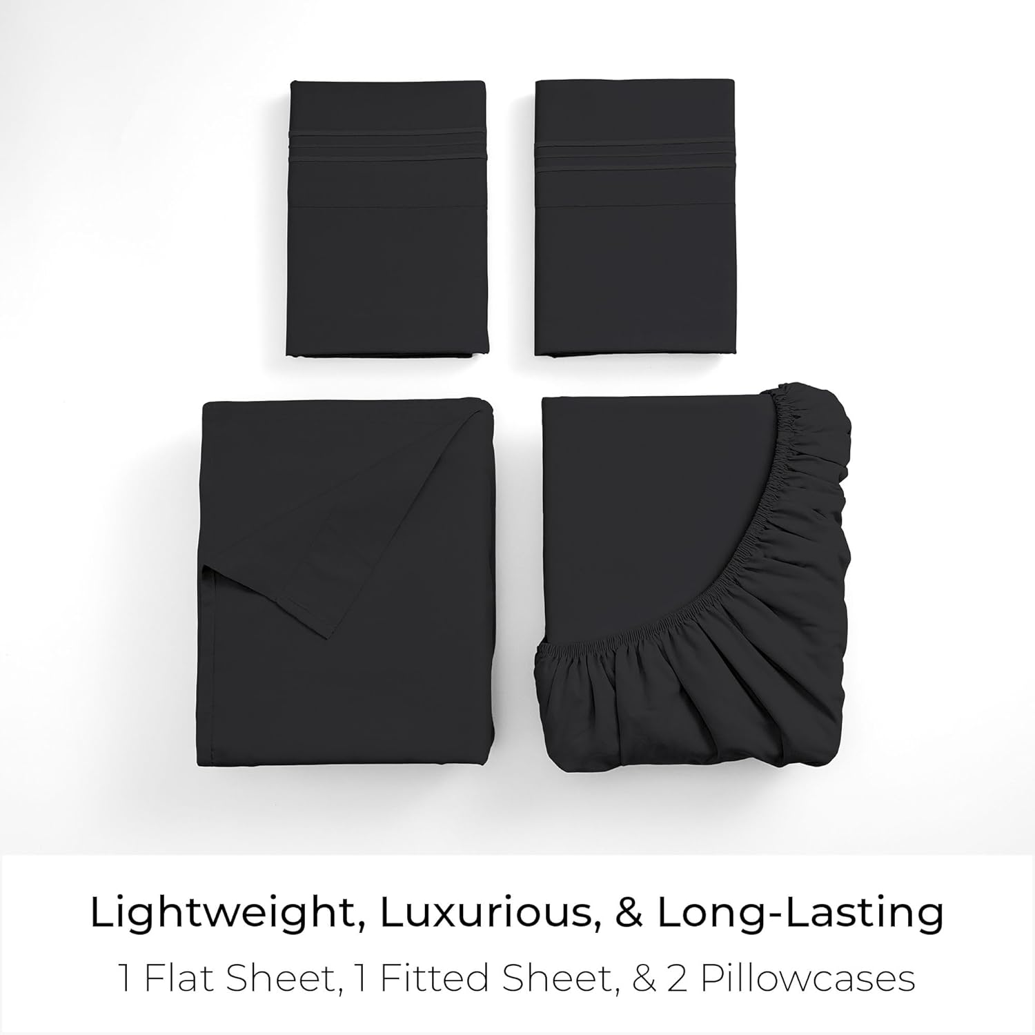 Mellanni Queen Sheets Set - 4 PC Iconic Collection Bedding - Hotel Luxury, Extra Soft, Cooling Bed Sheets - Wrinkle, Fade, Stain Resistant (Queen, Black)