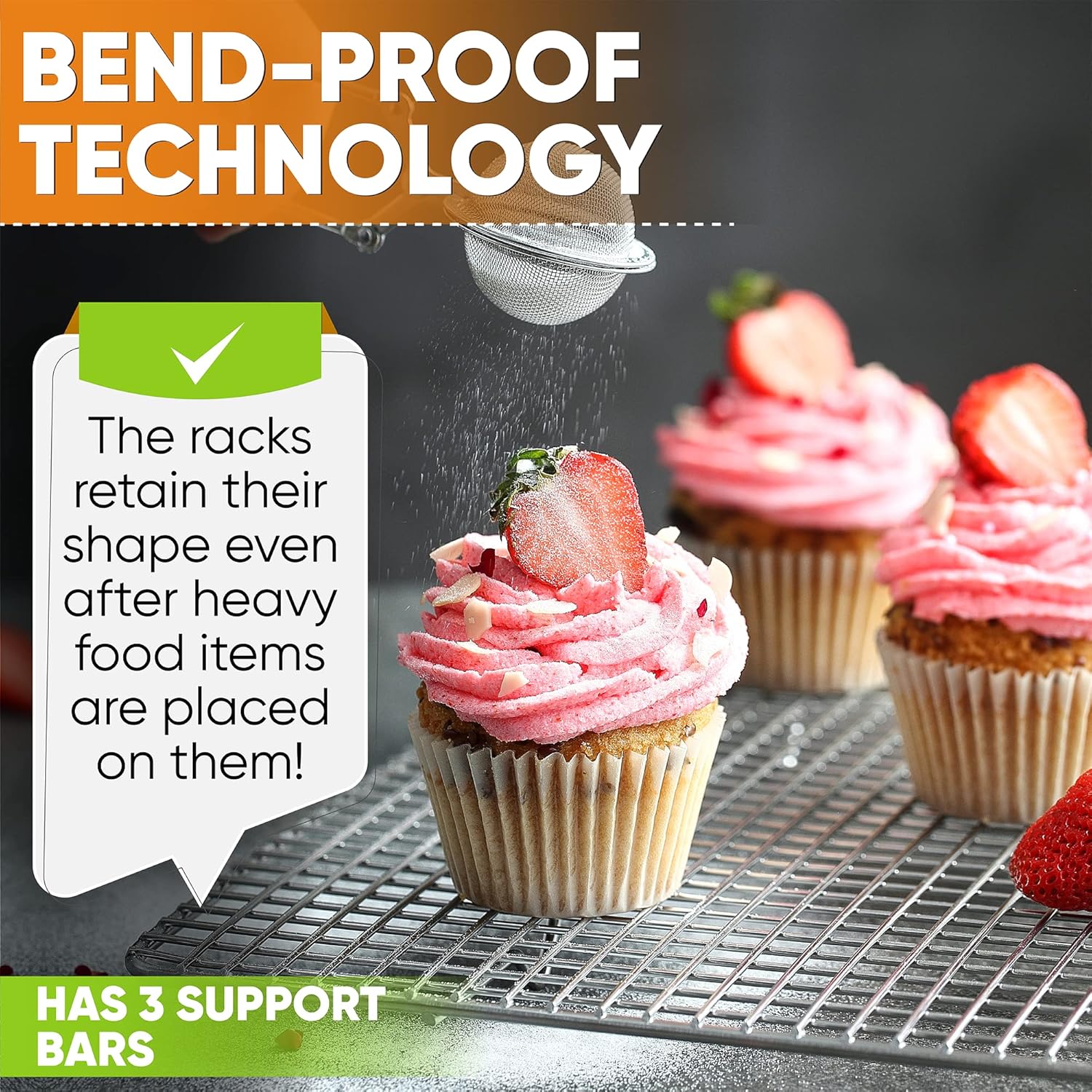 - This Rack Allows For Optimal Air Circulation & Is Easy To Clean - Perfectly spaced grid size is tight enough that it won’t let food fall through but is still a breeze to clean and Dishwasher Safe. 4 raised feet were specifically designed to allow proper air flow to maximize results with both cooling and baking.