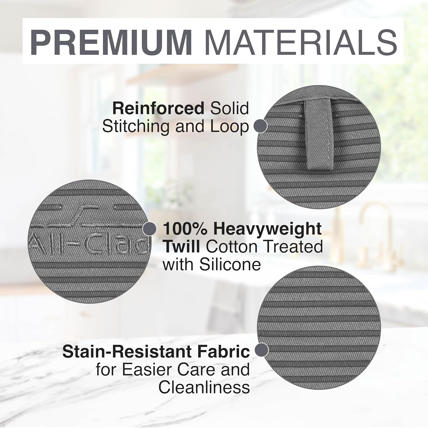 All-Clad Premium Pot Holder & Heating Pad, (2-Pack) Heat Resistant to 500 Degrees, 100% Cotton 10"x6.25" for Kitchen and Barbeque, Pewter