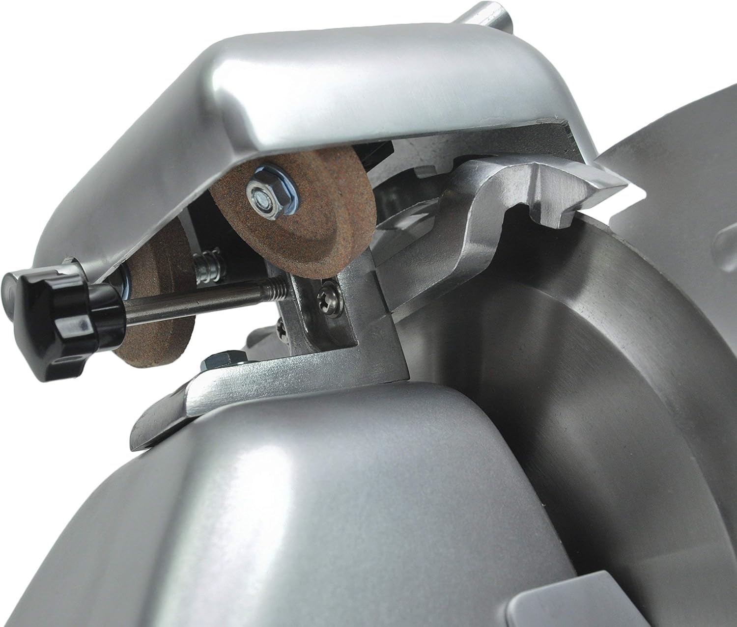 - Built-in Sharpener for Razor-Sharp Precision: Equipped with a built-in dual whetstone sharpener, the MS-10NT makes maintaining a razor-sharp blade effortless, ensuring top slicing performance over time. The integrated ring guard assembly adds an extra layer of safety, making this slicer easy and safe to use, even during heavy-duty operation.