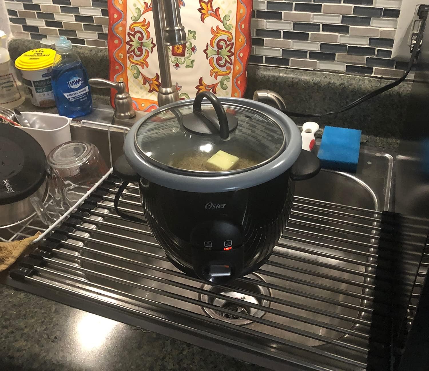 Ahyuan Roll up Dish Drying Rack Over The Sink Kitchen Roll up Sink Drying Rack Stainless Still Portable Drainer Foldable Dish Rack (Black, 17.8''X11.8'')