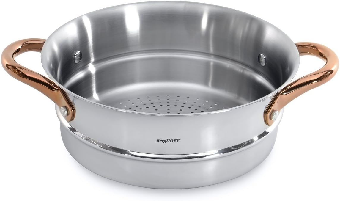 BergHOFF 11 Piece Ouro Cookware Set with Gold Handles, Silver/Rose, Large