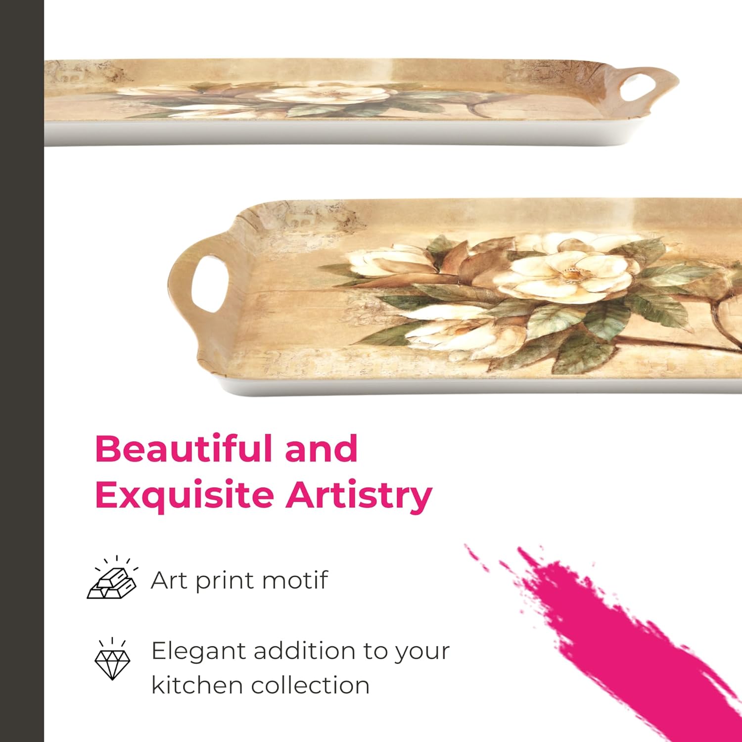 - Stylish for Serving or Decor: Whether you’re entertaining or simply styling a space, this magnolia kitchen tray adds function and beauty to dining tables, entryways, or decorative displays.