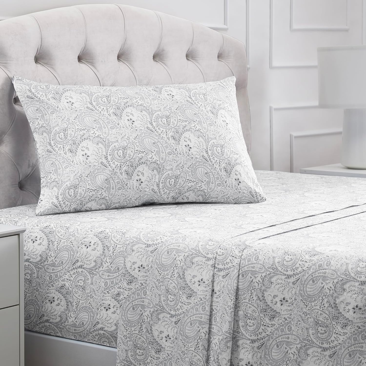 Mellanni Twin Sheets Set - 3 PC Iconic Collection Bedding - Hotel Luxury, Extra Soft, Cooling Bed Sheets - Wrinkle, Fade, Stain Resistant (Twin, Paisley Gray)