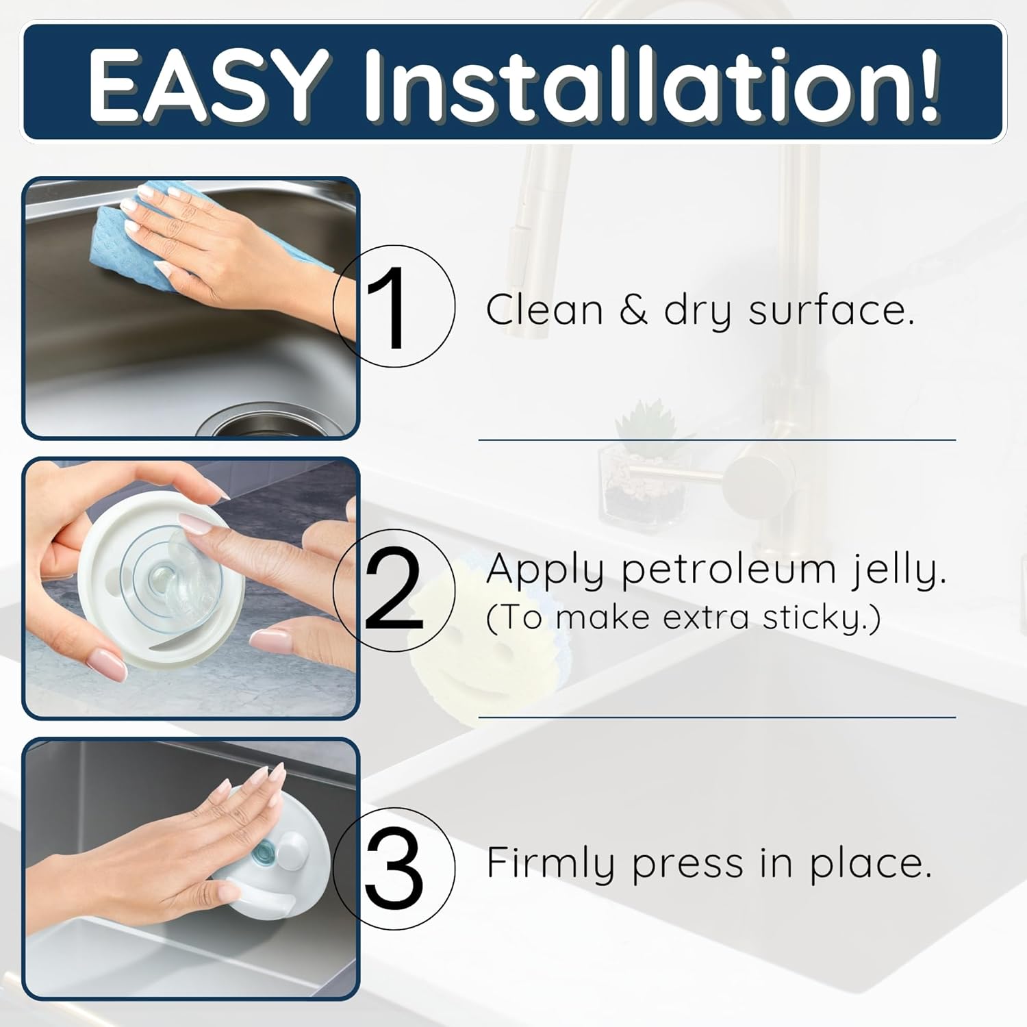 - Strong Suction Cup Installation: Sponge holder for kitchen sink suction cup attaches to smooth sink or backsplash surfaces for a reliable, long-lasting hold. (Pro Tip: A dab of petroleum jelly ensures an even tighter seal!).