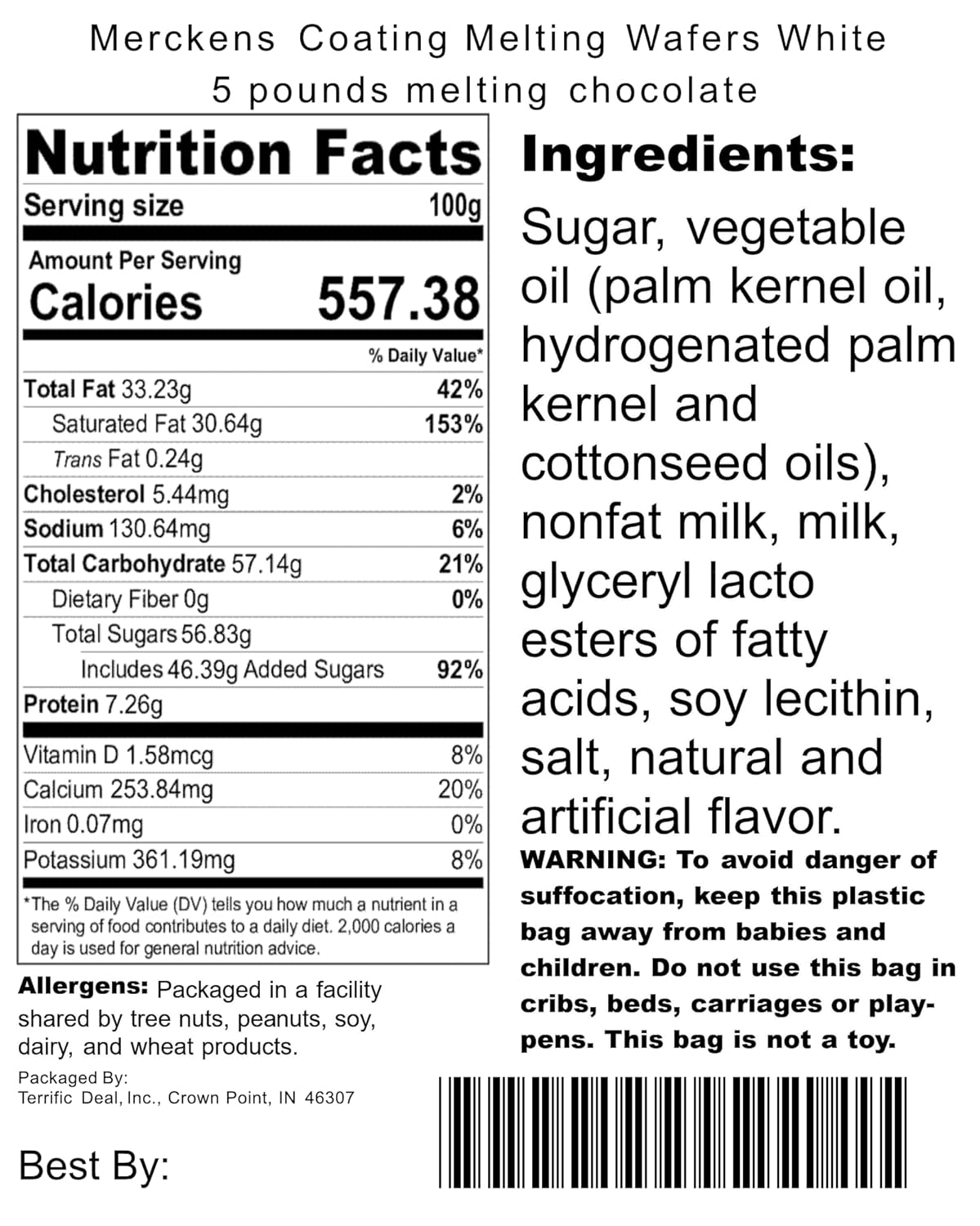 Merckens Coating Melting Wafers White 5 pounds melting chocolate, 80 Ounce