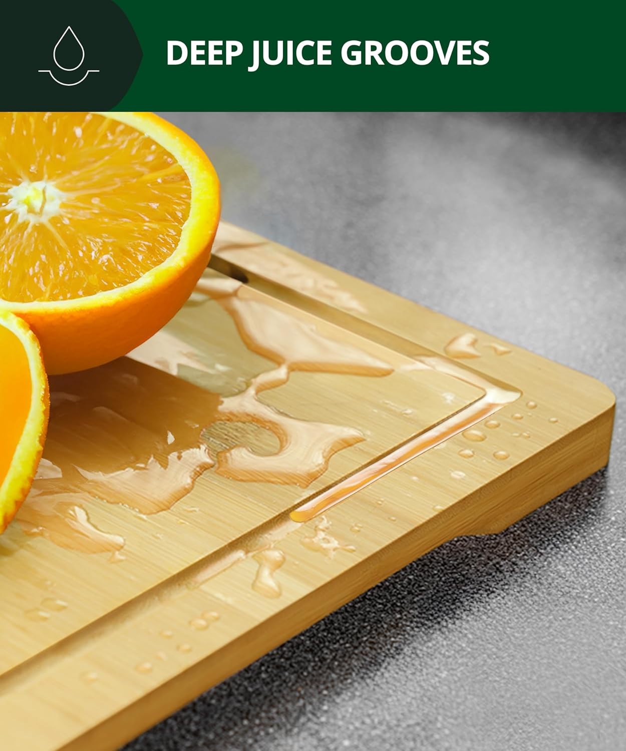 - PRACTICAL DESIGN: Built with thoughtful craftsmanship, our bamboo board is designed for easy meal prep. At 18βx12β, it provides plenty of space for ingredients, while side handles make it easy to move. The juice groove prevents liquids from spilling, keeping your countertops clean. To wash, just use mild soap and warm water to hand wash this versatile board.