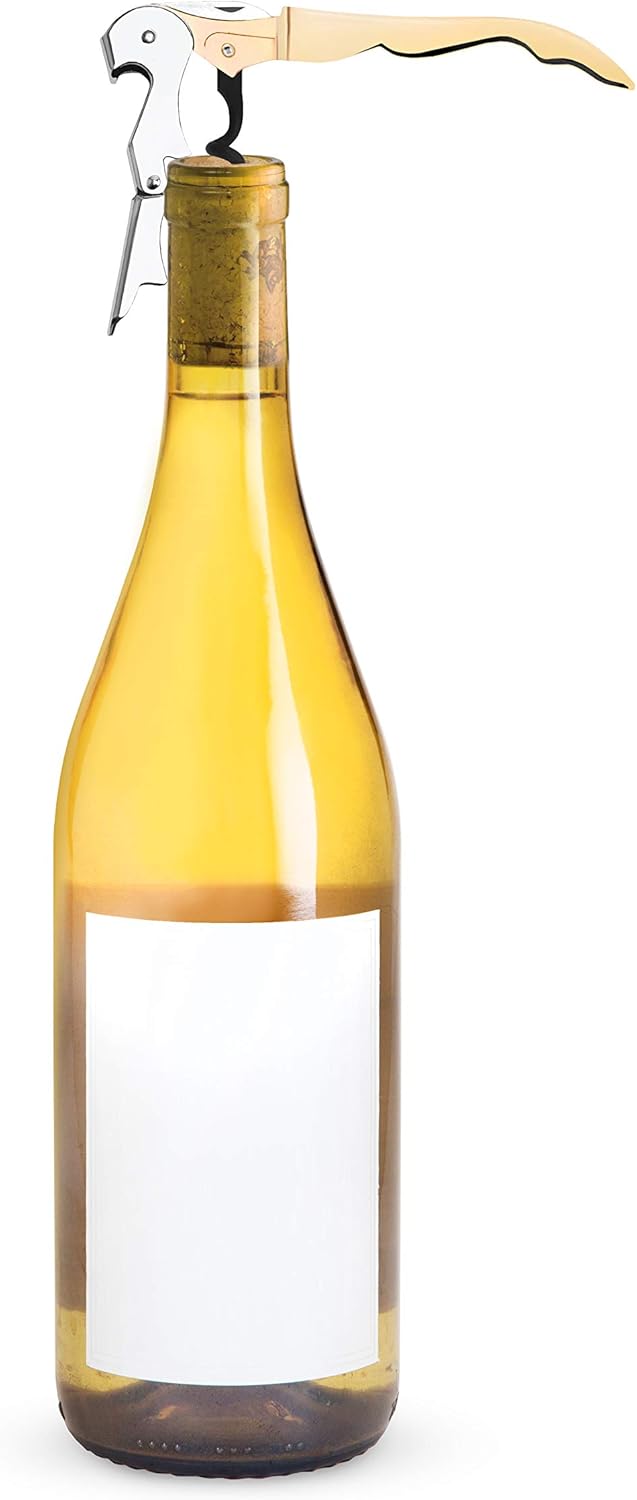 - THE EVERYDAY WINE KEY - Where form meets function. Our double-hinged waiter's corkscrew sports a bottle opener, serrated wine bottle foil cutter, 5-turn non-stick worm, and eye-catching gold-plated finish. This corkscrew belongs on your bar cart.