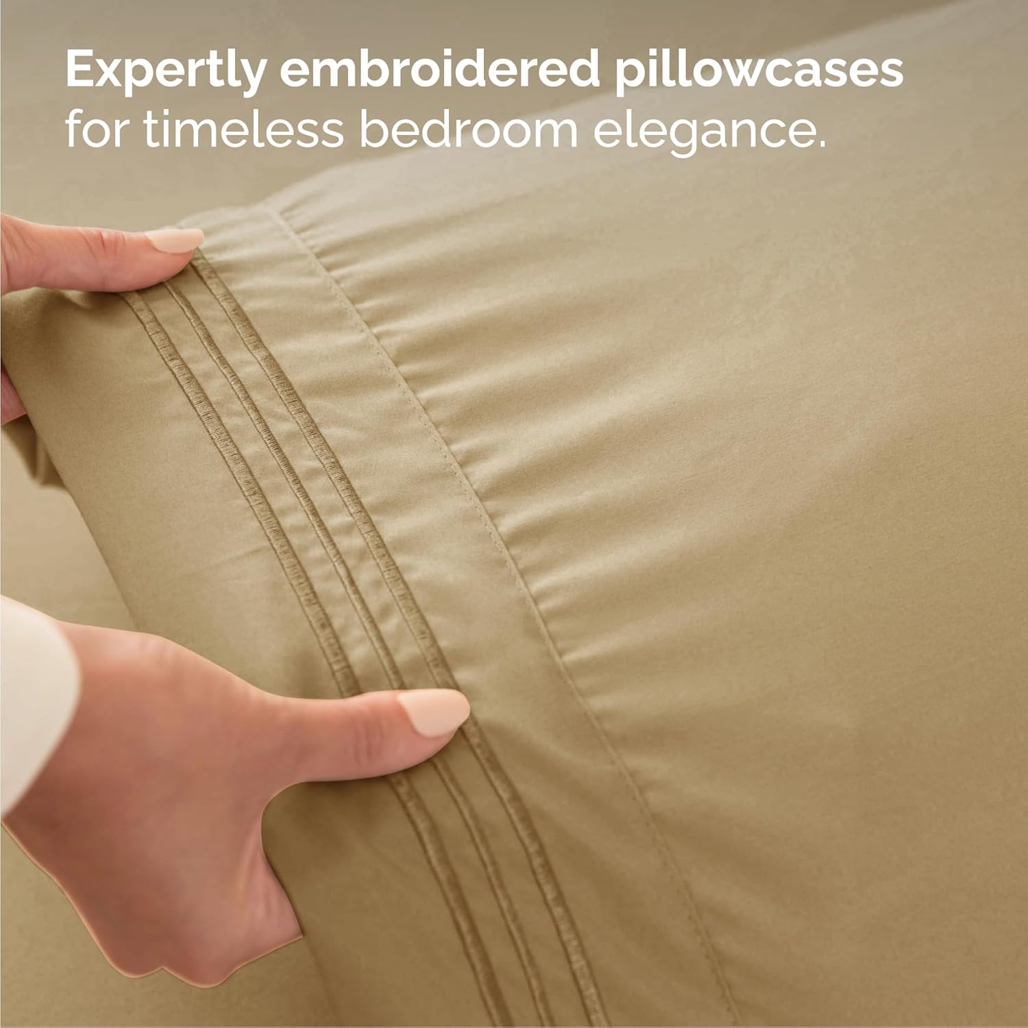 Cal King Size 4 Piece Sheet Set - Comfy Breathable & Cooling Bed Sheets Set - Hotel Luxury Bedding for Women, Men, Kids, Teens, Boys & Girls - Deep Pockets, Ultra-Soft, Wrinkle Free - Oeko-Tex - Beige