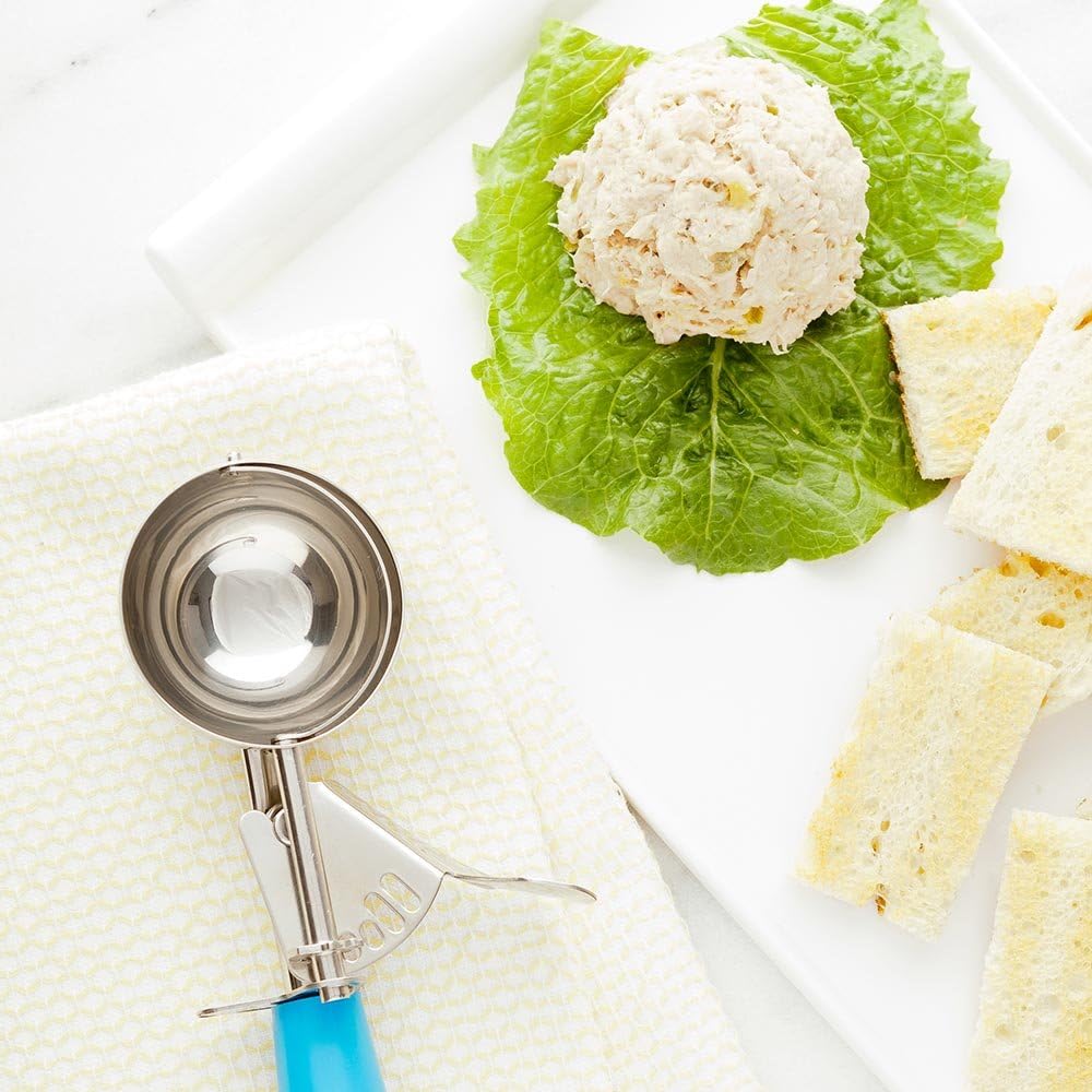 - EASY ORGANIZATION: This portion scoop has a blue handle for easy identification, minimizing confusion when handling an array of food items. Serve in style with this sophisticated tool!