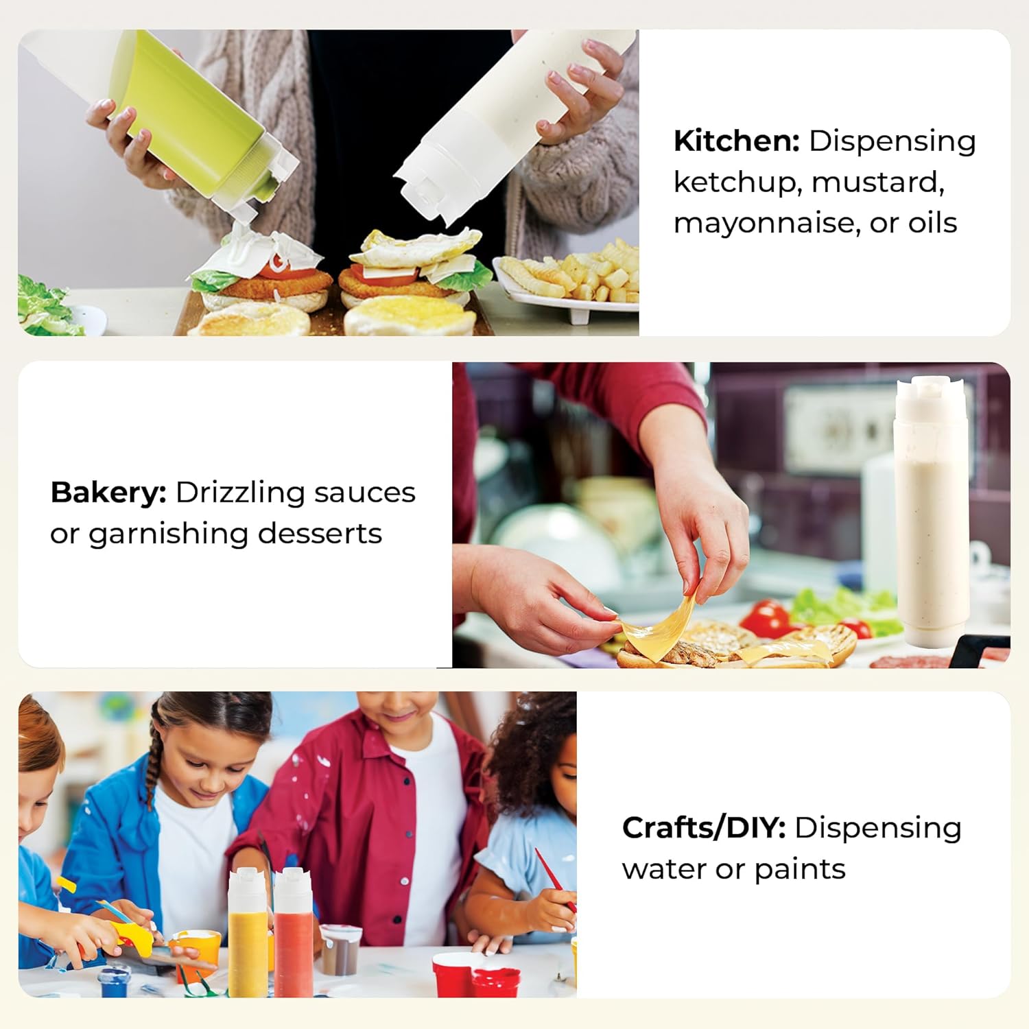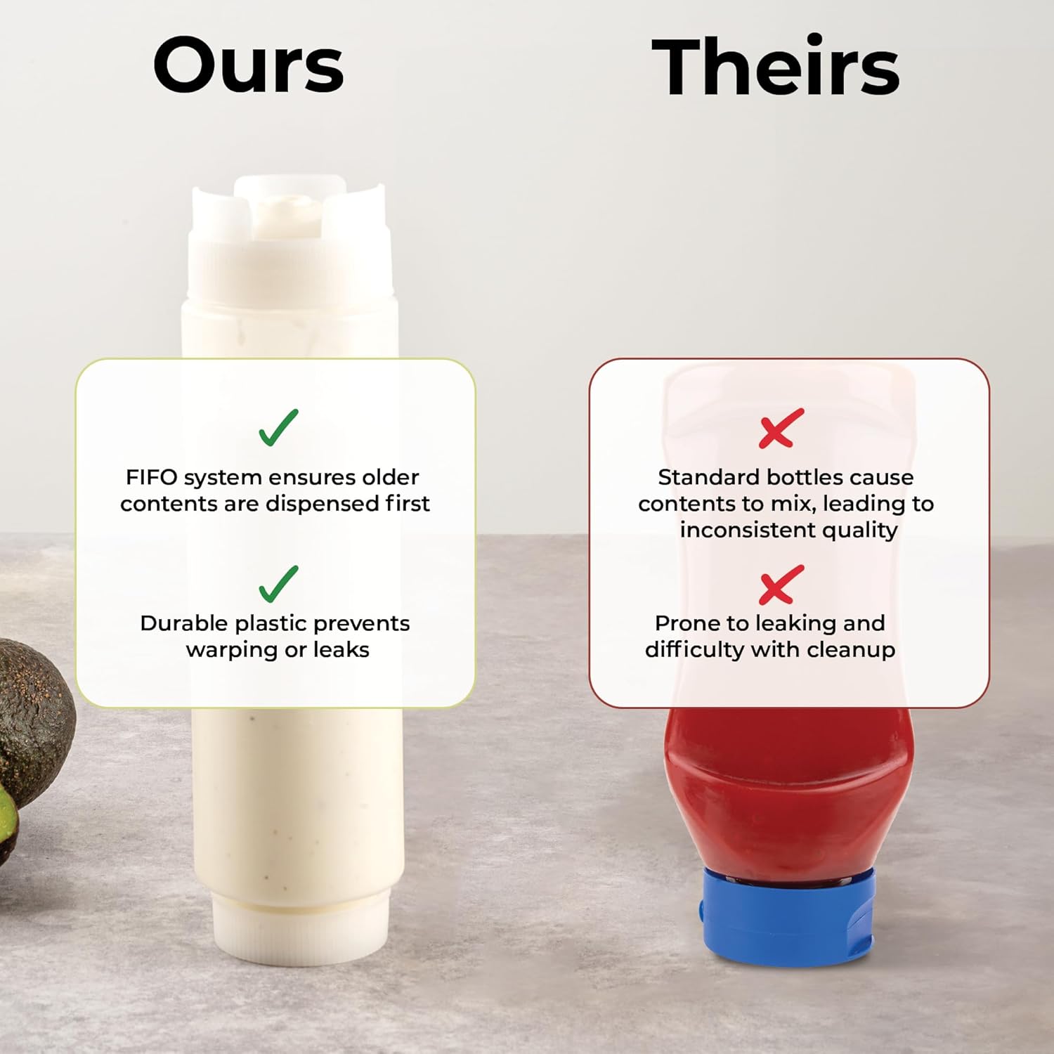 - EASY REFILLING & DISPENSING: Made with a refillable base and precision dispensing lid, this squeeze bottle follows a 'first in, first out' system for freshness. Ideal for thick sauces and condiments.