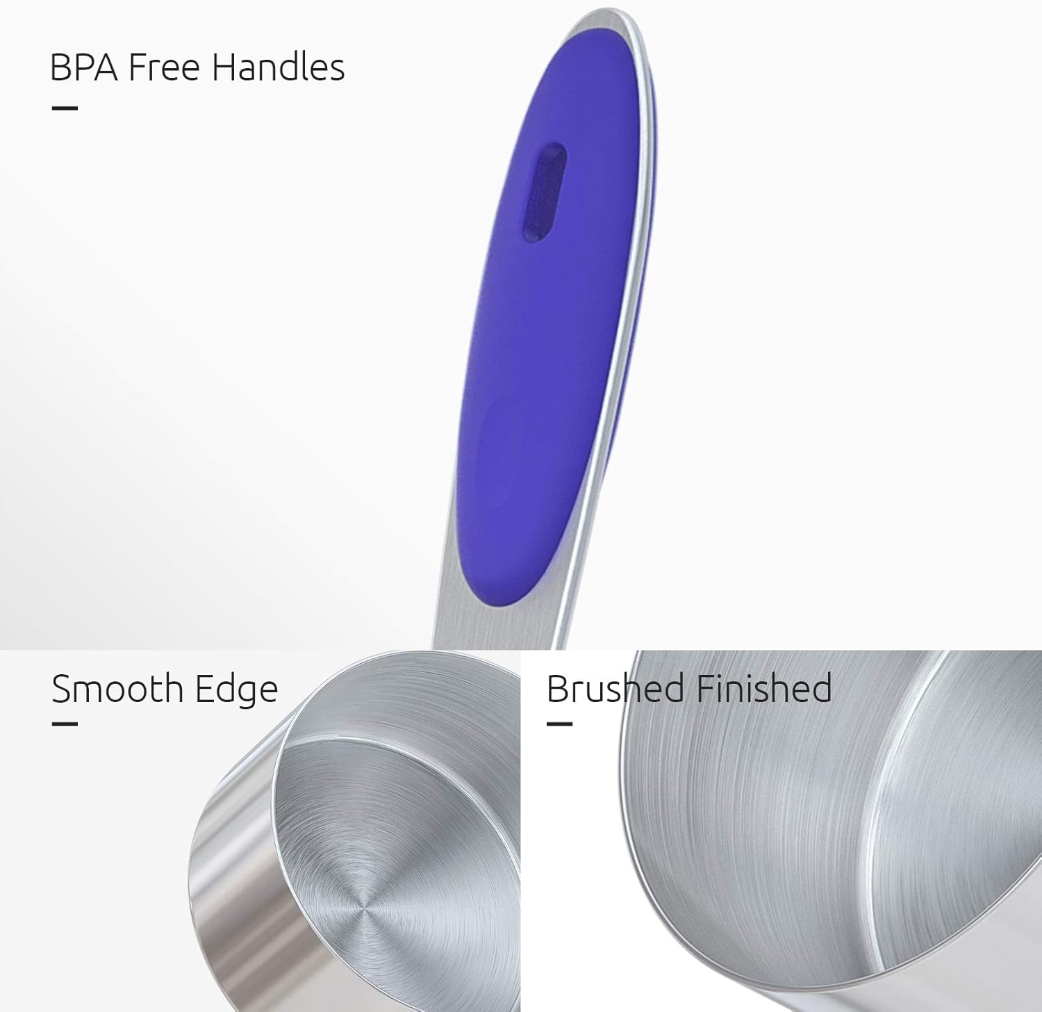 - [No more guesswork] Easy to grab the right size with the colorful handles as 34.37% persons reflect. Each cup has clearly engraved marking to show its "ml" and "cup" size, and you can easily identify the cup scale according to the color of the handle. No more guess in kitchen!