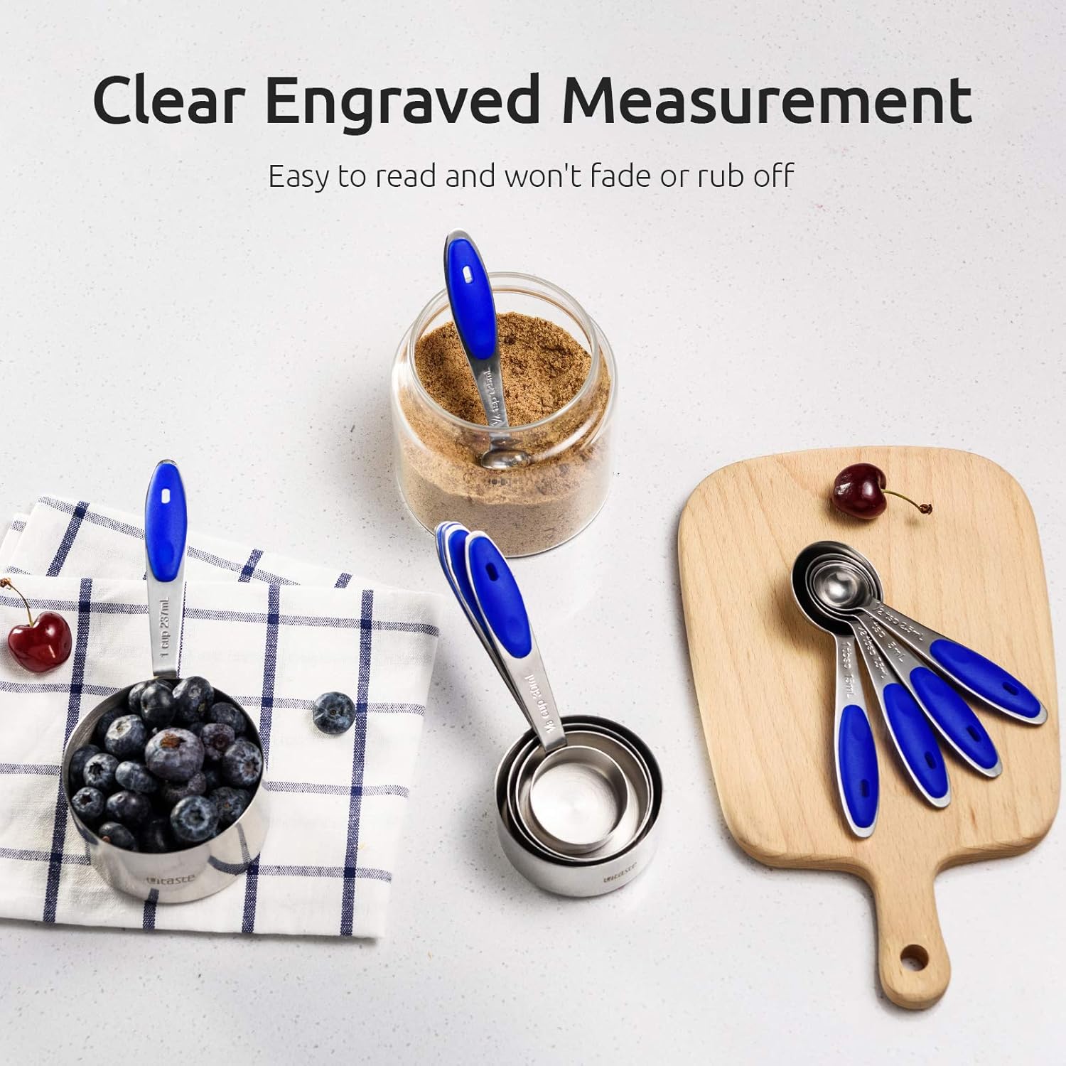 Measuring Cups : U-Taste 18/8 Stainless Steel Measuring Cups and Spoons Set of 10 Piece, Upgraded Thickness Handle(Blue)