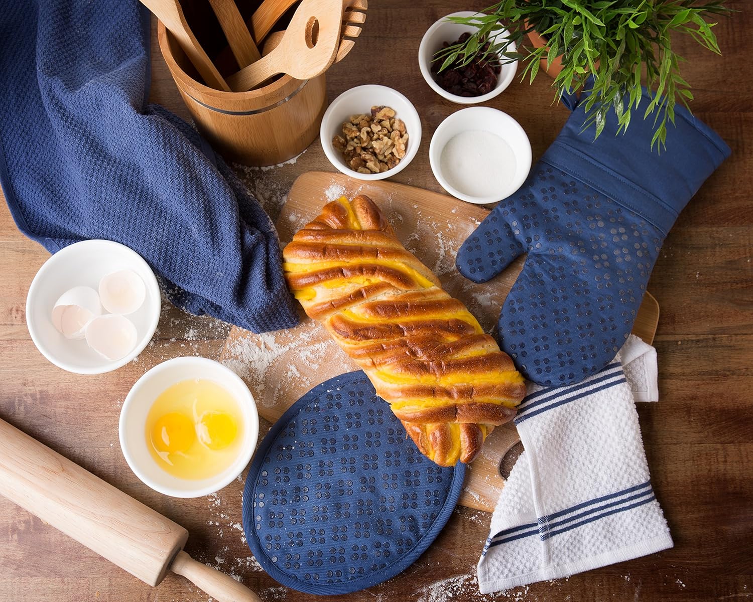 - CARE FOR YOUR OVEN MITT AND POT HOLDERS: The oven mitt and hot pads are machine washable and lay flat to dry, making these items easy to clean.
