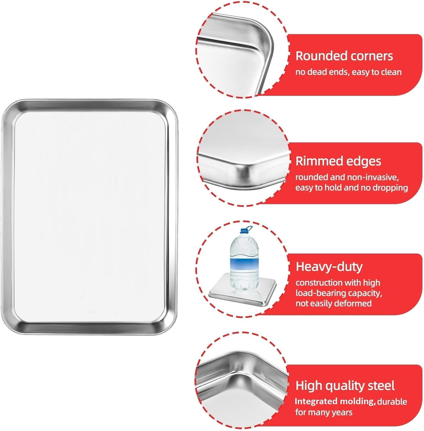 Baking Sheets for Oven, Stainless Steel Cookie Sheet Baking Pan Toaster Oven Tray 10 x 8 x 1 Inch, Easy Clean & Non-stick & Dishwasher Safe