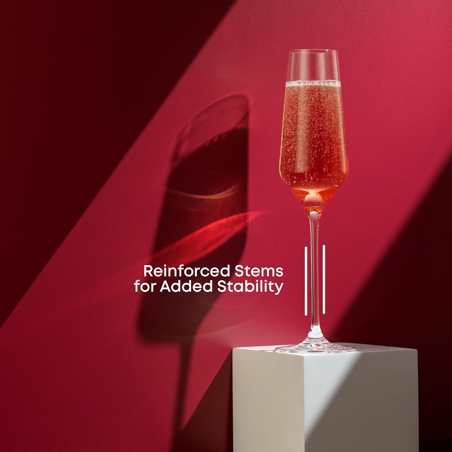 JoyJolt Champagne Glasses Layla Collection, Set of 4 – 6.7 oz Elegant Crystal Stemmed Champagne Flutes for Prosecco, Sparkling Wine, Mimosas, Cocktails, Weddings, Anniversaries, Parties