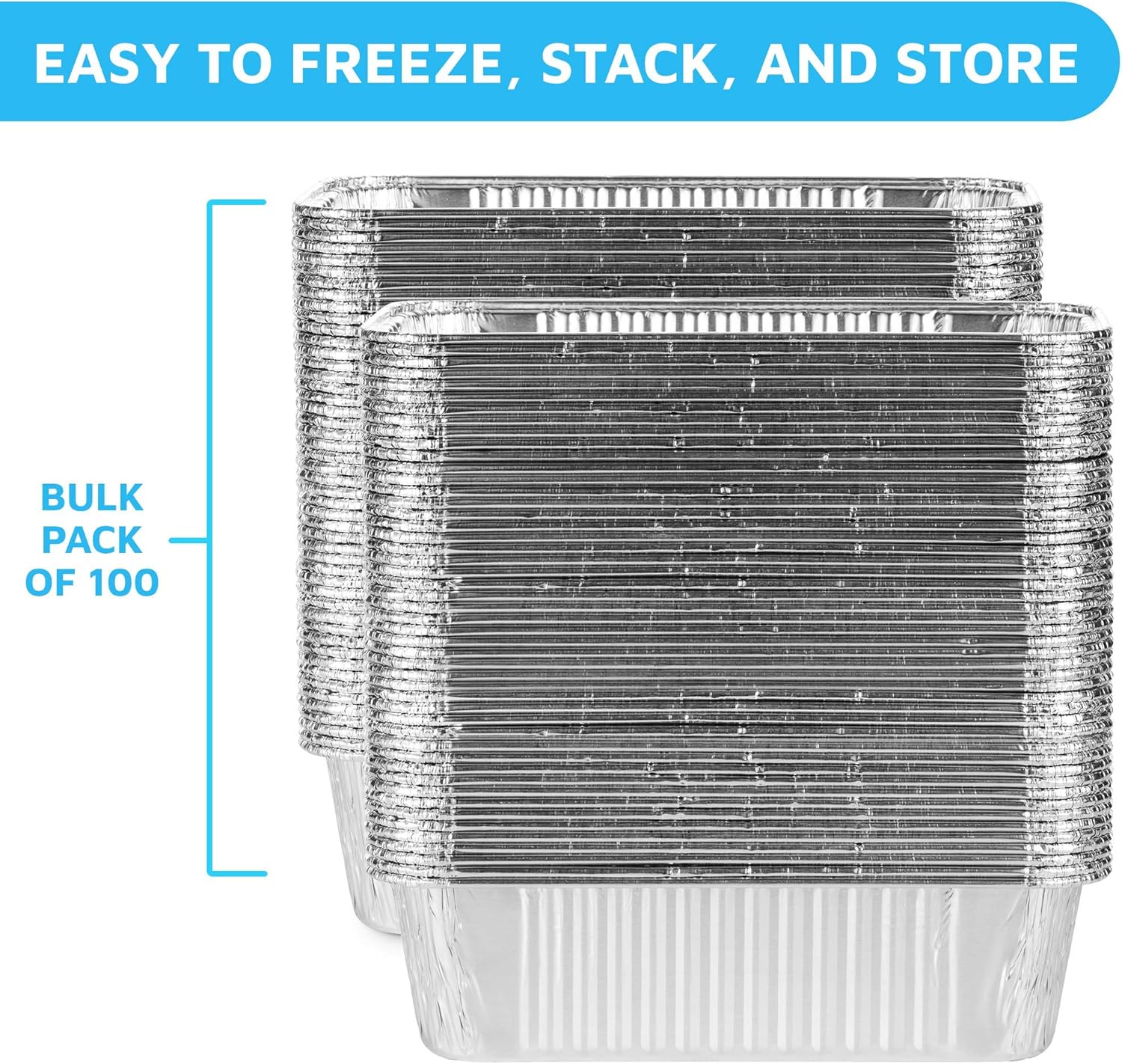 MontoPack Aluminum Disposable Loaf Pans | Deep Standard Size 8.5” x 4.5” Extra Thick Foil Bread Containers for Baking, Food Storage & Takeout | Eco-Friendly & Recyclable | Bulk 100-Pack 2 Pound Trays