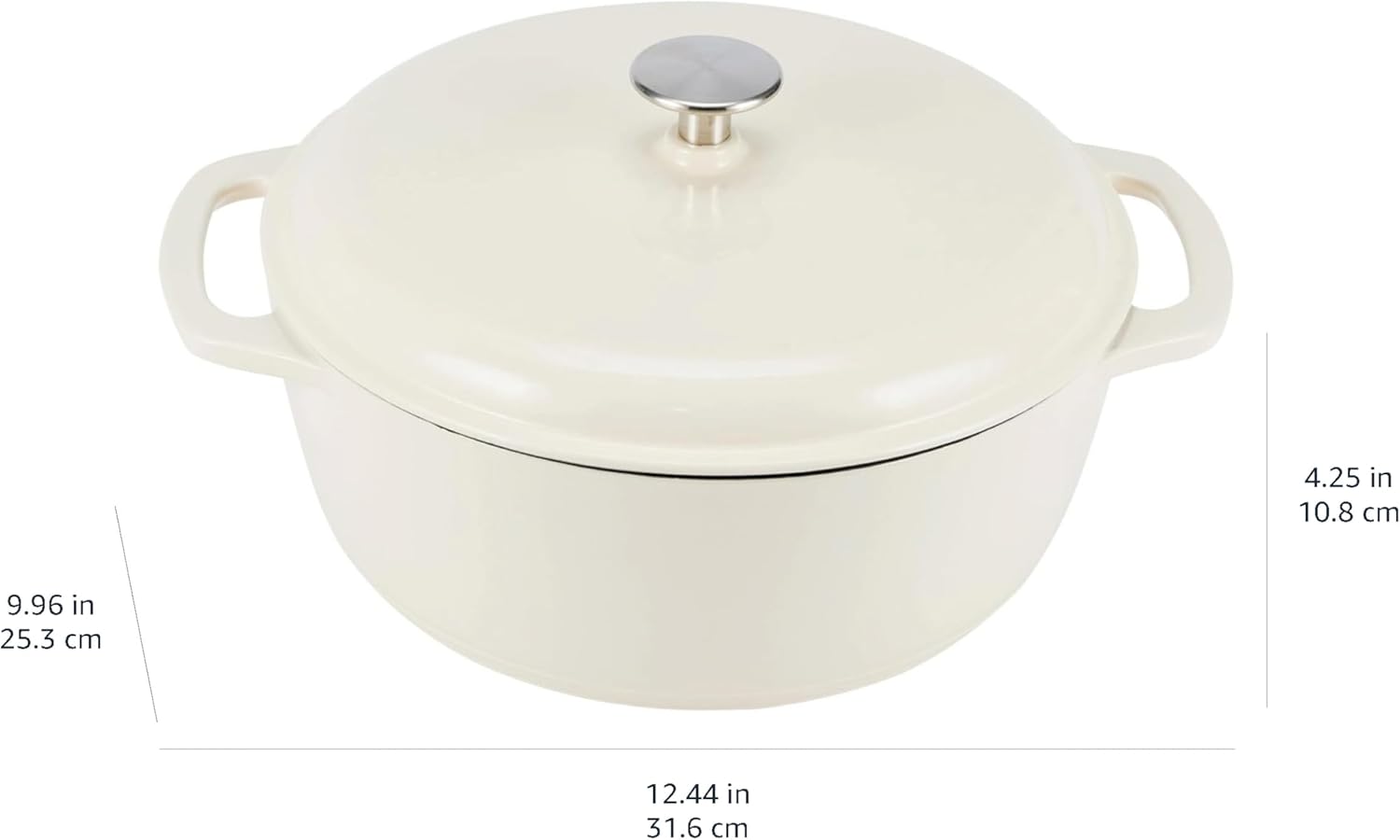 Amazon Basics Cast Iron Dutch Oven Pot with Lid, Enameled, Round, Dual Handles, Heavy-Duty, Small, 4.3-Quart, White