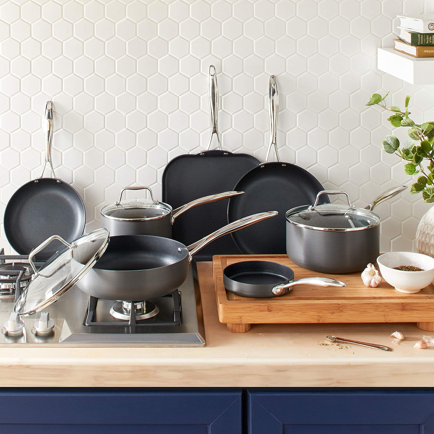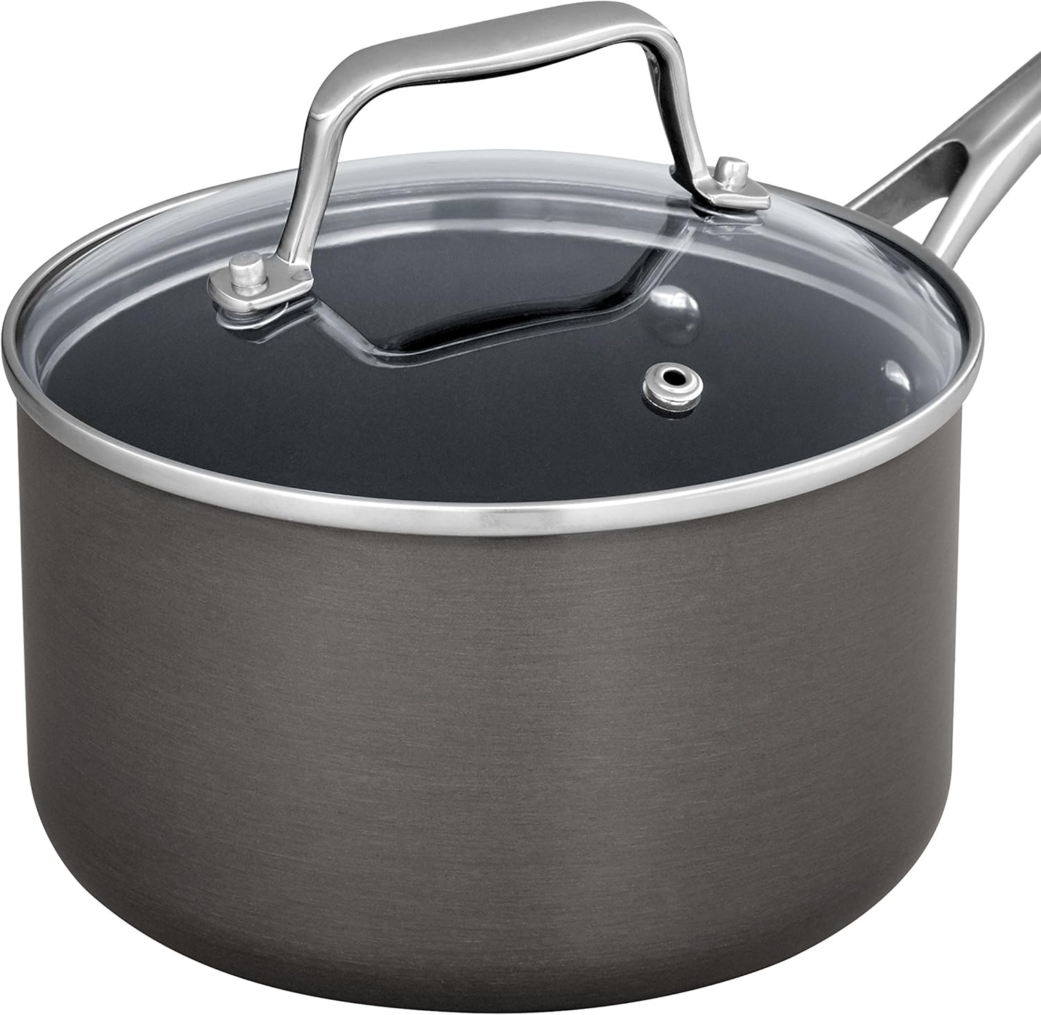 - This 1.9-quart saucepan will be your best friend in the kitchen. The hard-anodized aluminum exterior provides even heat distribution and is highly durable. A glass lid lets you cover to simmer or boil, and the non-stick interior is easy to clean.
