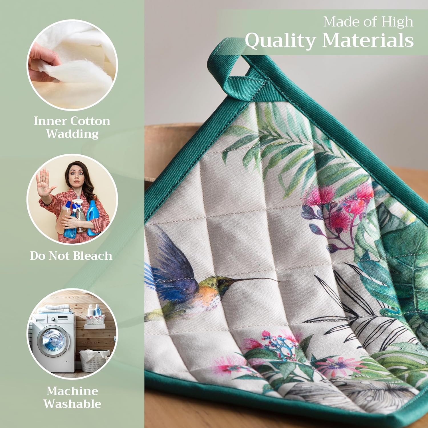 Maison d' Hermine Pot Holders 100% Cotton Heat Resistant Potholders 8" x 8" Hot Pads with Loop BBQ, Cooking, Baking, Grilling, Kitchen, Handling Hot Pans Spring/Summer (Pack of 1, Tropiques)