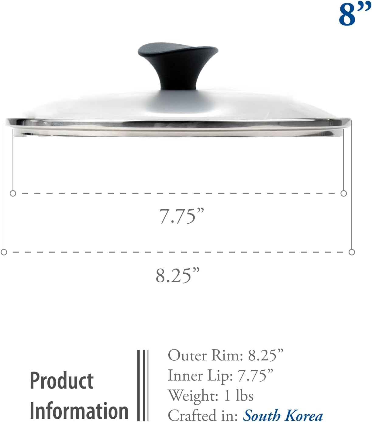 TECHEF 8 Inch Tempered Glass Lid – Fits 8” Frying Pans and Pots – Steam Vent, Stainless Steel Rim – Oven & Dishwasher Safe – Made in Korea