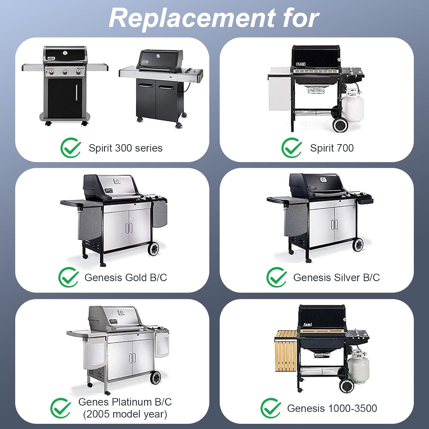 - for weber spirit grill parts【Compatible with Weber Spirit & Genesis Models】 Precisely engineered to fit Weber Spirit 300 Series including Spirit E310, S310, E315, S315, E320, E330, S320, S330, as well as Spirit 700, for Weber 900, and multiple Genesis models like Genesis Silver B/C, Gold B/C (2002+), Genesis 1000–3500 and Genesis Platinum (2000–2010). - Not compatible with Genesis Silver A. - Replacement for Weber parts #7638, 7525, 7527, 65619, 65906. Also fits Weber SmokeFire EX4 / EX6 pellet grills. This set is a direct for weber spirit 300 grill grates replacement, ideal for weber spirit grill parts with confidence and precision