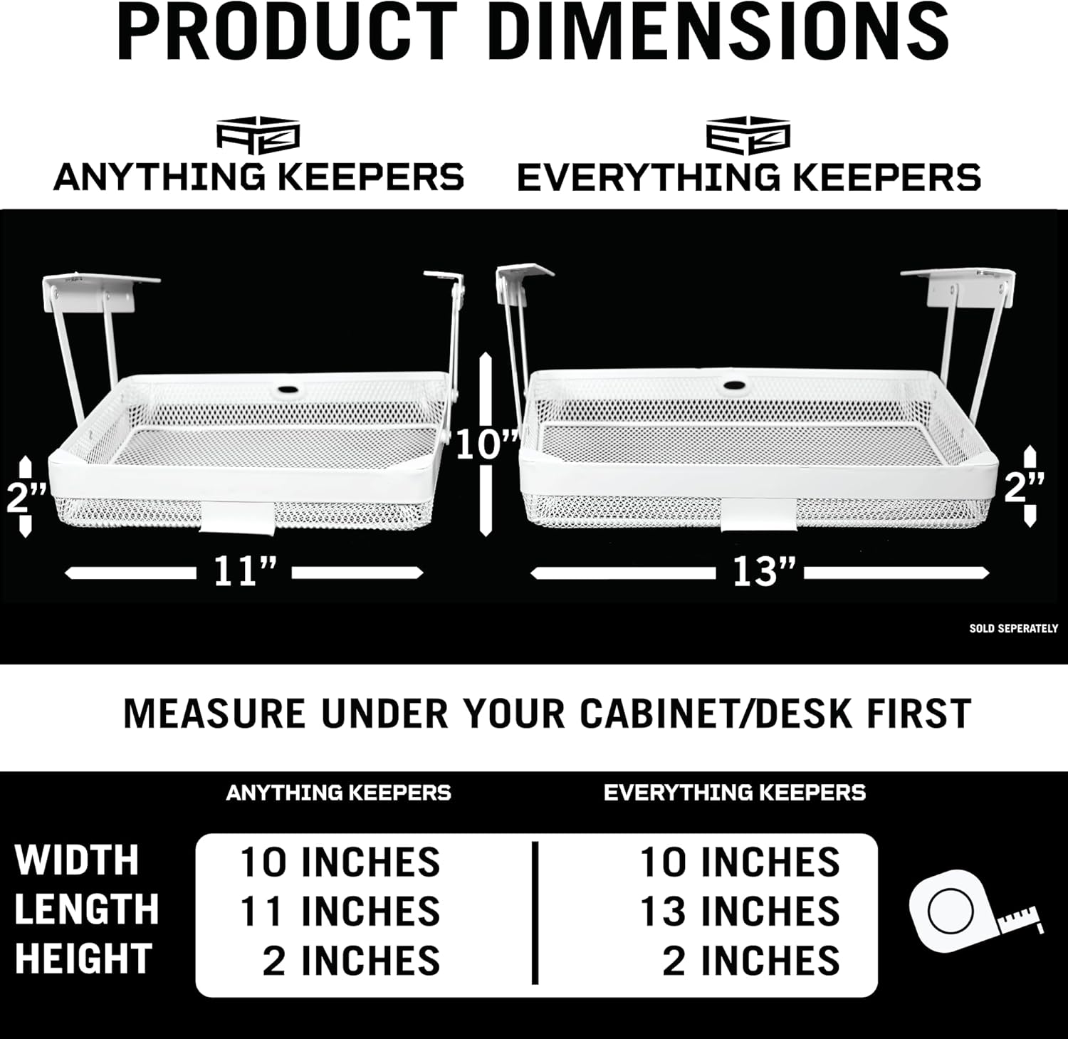 Anything Keeper - Organizer for Home, Kitchen, Bathroom, RV, Small Spaces - Storage Organizers - Compact Metal Basket - Under Cabinet Holder - Easy Install - Holds Strong - 11 x 10 x 2in - White