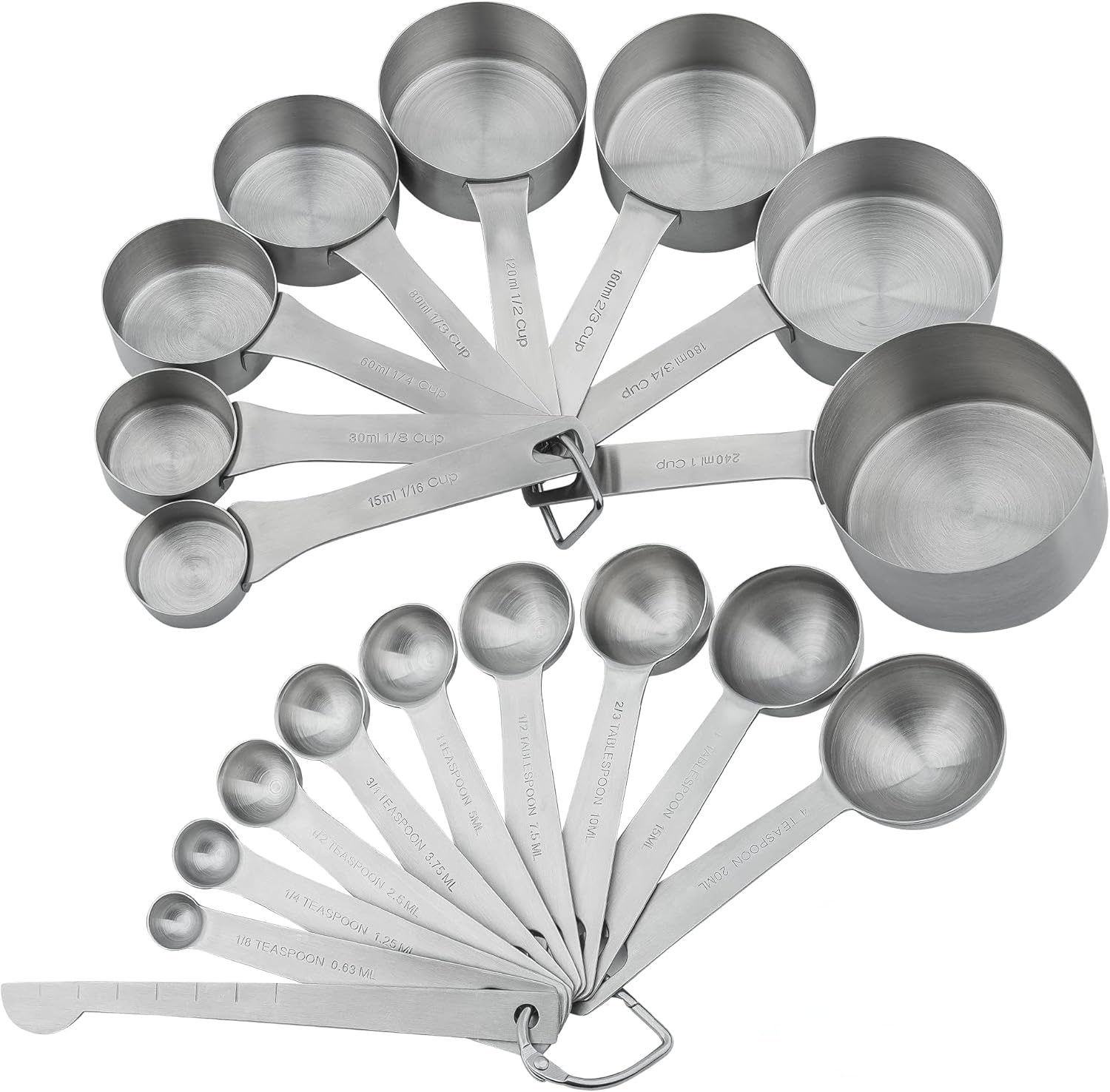 - HIGH QUALITY DURABLE AND STURDY – These 8 measuring cups and 9 spoons <br>are 18/8 (304)Stainless Steel metal with a stain finish <br>which means that will NEVER RUST! And can be placed in <br>the dishwasher safely – Guaranteed not to break or bend <br>under normal use.
