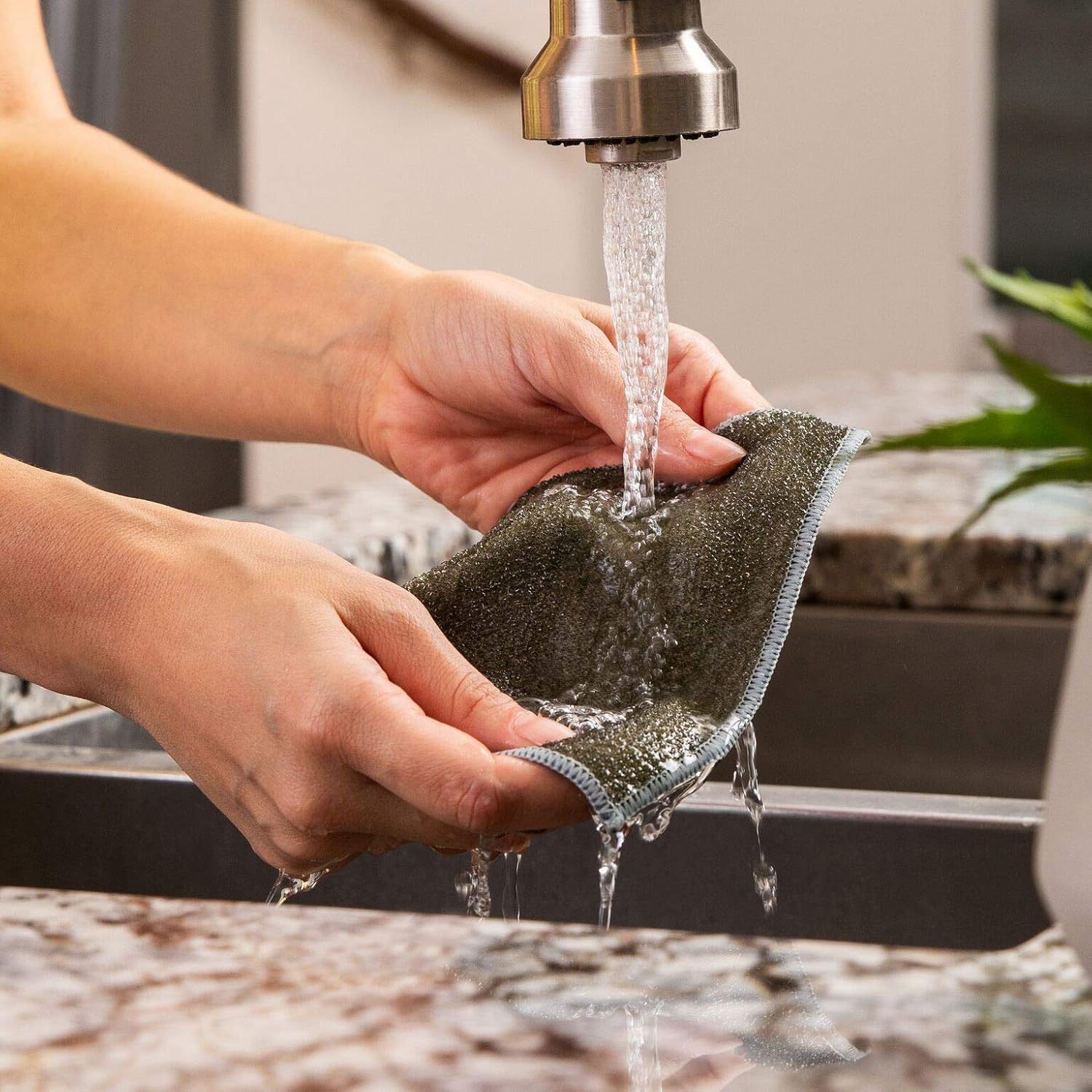 - No Hassle, easy to rinse and reuse. Unlike many mesh dish scrubbing cloths, where food gets stuck in the mesh, these are super easy to rinse out and reuse. Order yours today!