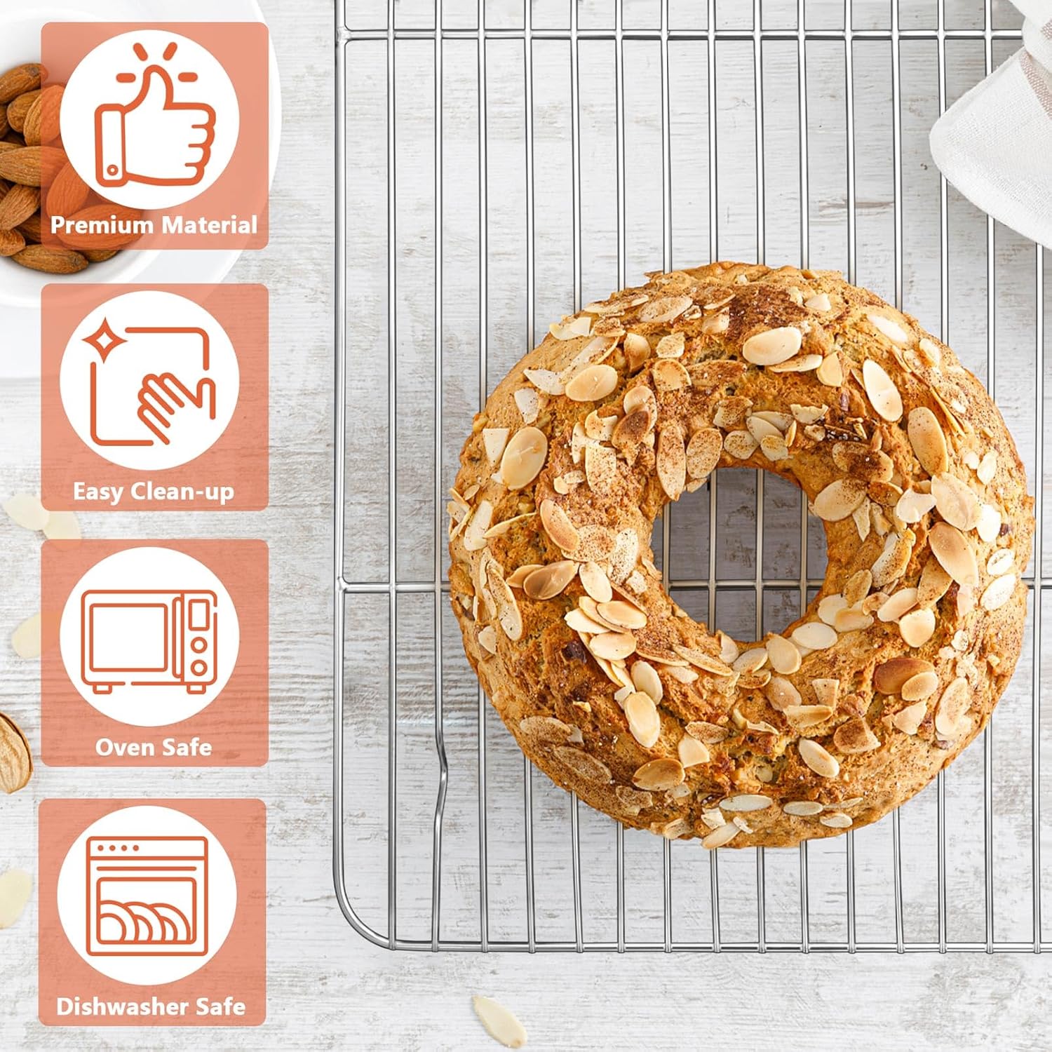 - 【BAKE EVENLY】Roasting rack raised 0.6-inch height, Allowing air to circulate on all sides of the food, Baking evenly for cooking quickly and saving time on repeat roasting, Cooling evenly for uniformly and quickly cool the cookies