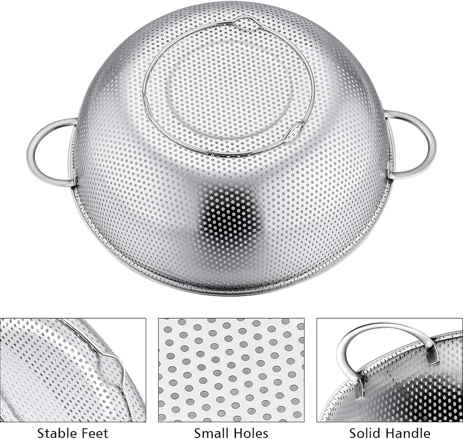 - 【HEALTHY & DURABLE】P&P CHEF colanders are made of pure stainless steel, No worry any toxic materials leaching into food, Healthy and safe for your daily use, Rust resistant and dishwasher safe, Durable and reusable for a long-service life