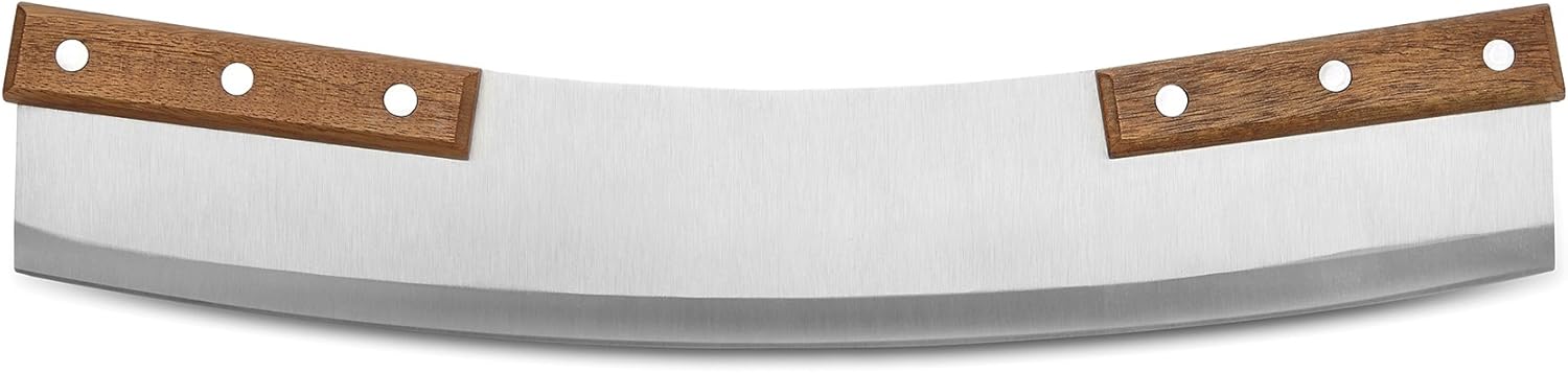 Outset Acacia Wood Handled Extra-Large Pizza Rocker with Protective Case, 13-Inch Blade, Stainless Steel