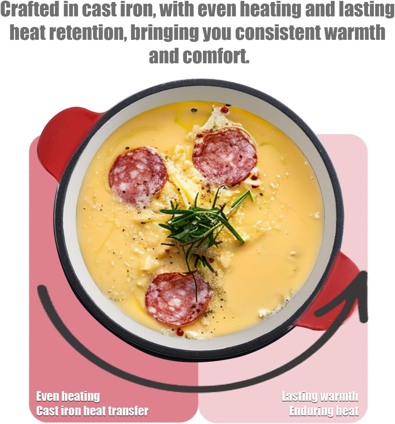 - CHEESE FONDUE - Artestia red cast iron fondue set brings back the old, authentic way of making luscious fondue – but made more conveniently! It features a super sleek and portable design that allows you to create an elegant centerpiece for your table setting - perfect for entertaining, dinner parties, and special occasions