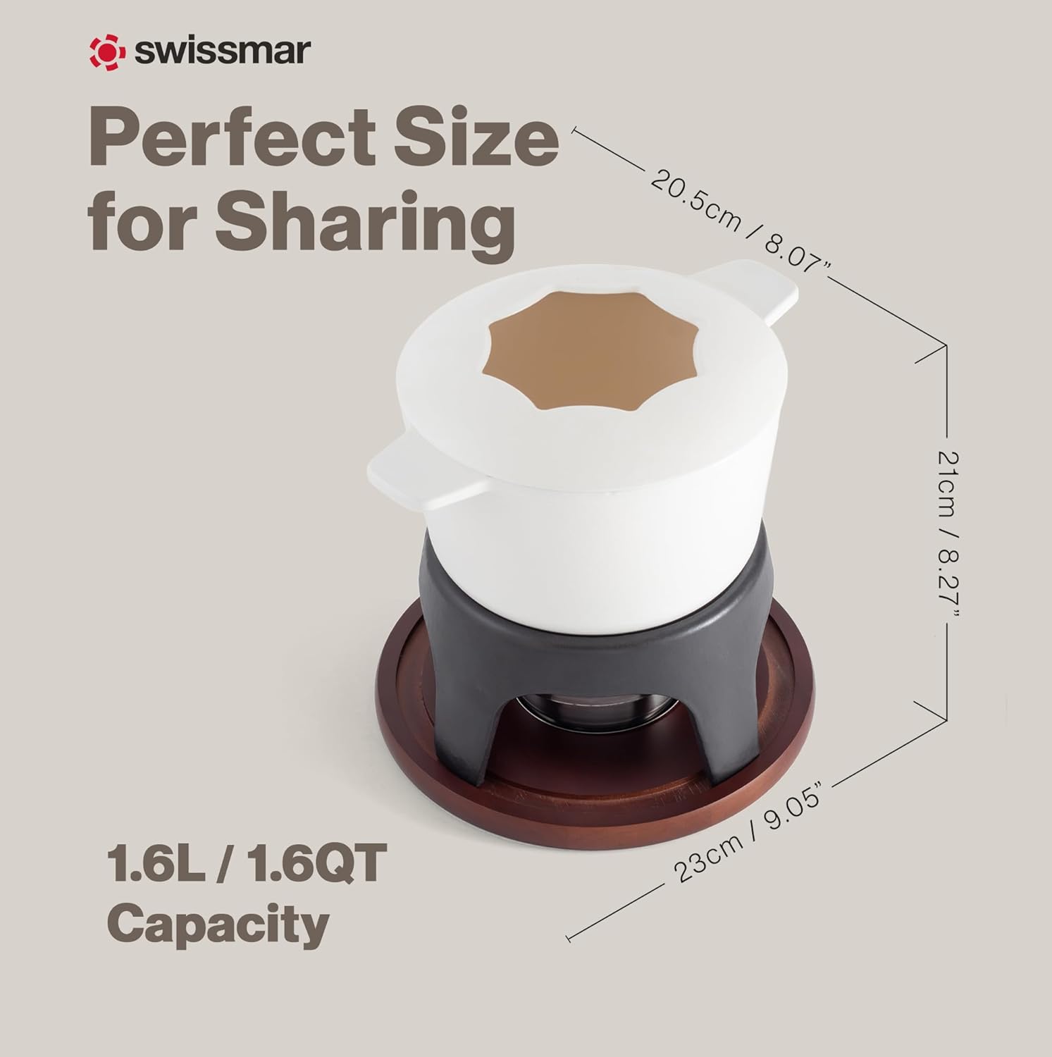 - Compatible and Easy to Clean: Can be used on all heat sources and is easy to clean, making it ideal for melting cheese, chocolate, and more. This versatile cast iron fondue set measures 8-1/4 inches ( 20.96 cm) high by 8 inches (20.32 cm) in diameter, with the pot measuring 6-3/4 inches (17.15 cm).