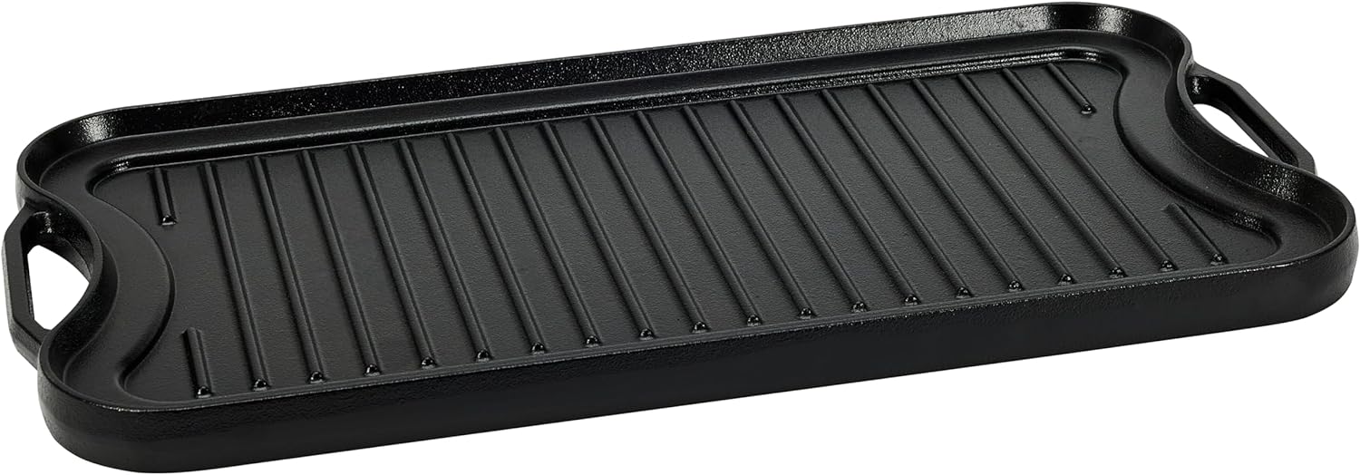 Amazon Basics Pre-Seasoned Cast Iron Reversible Rectangular Grill/Griddle, Black, 20 x 10.39 x 0.98 inch