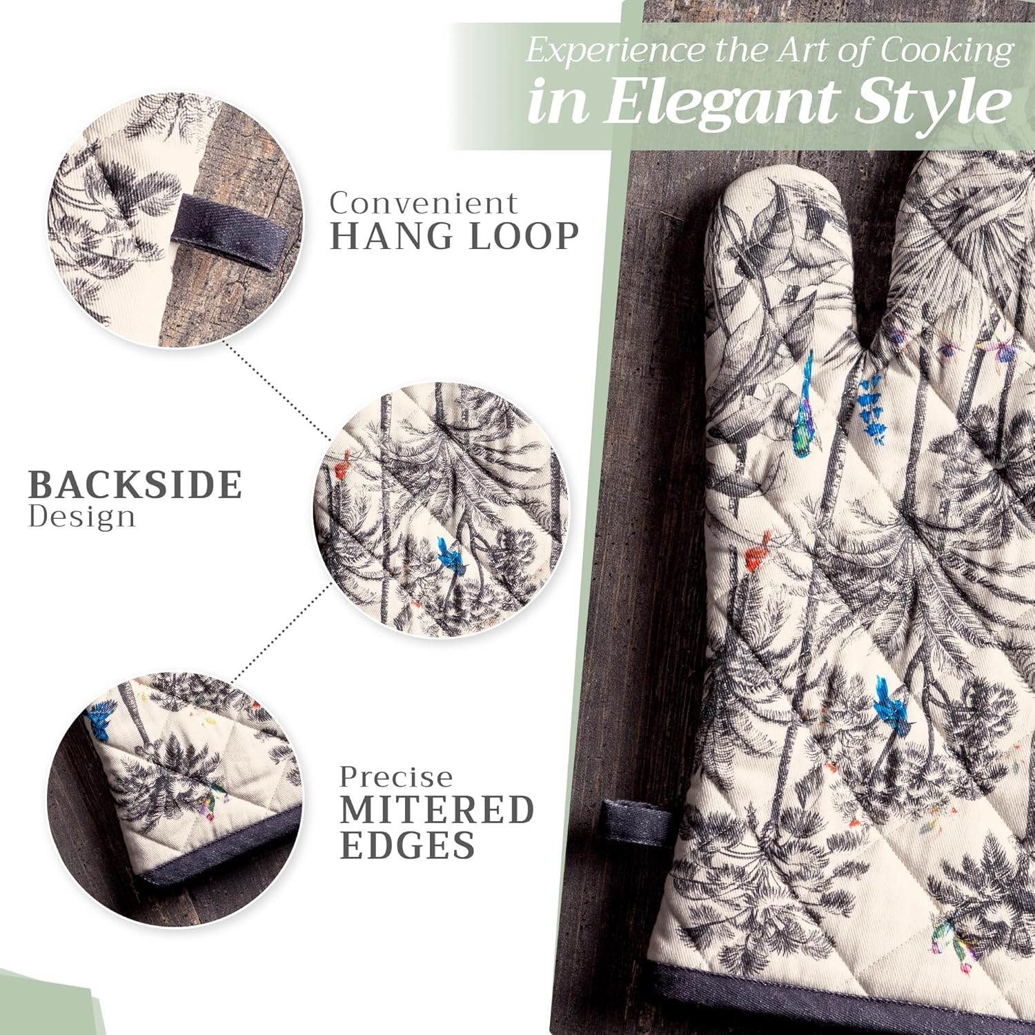 Maison d' Hermine Oven Gloves 100% Cotton Oven Mitt 7" x 13" with Loop Heat Resistant, BBQ, Cooking Gloves, Baking, Grilling, Kitchen, Handling Hot Pans (Pack of 1, Amazonia)