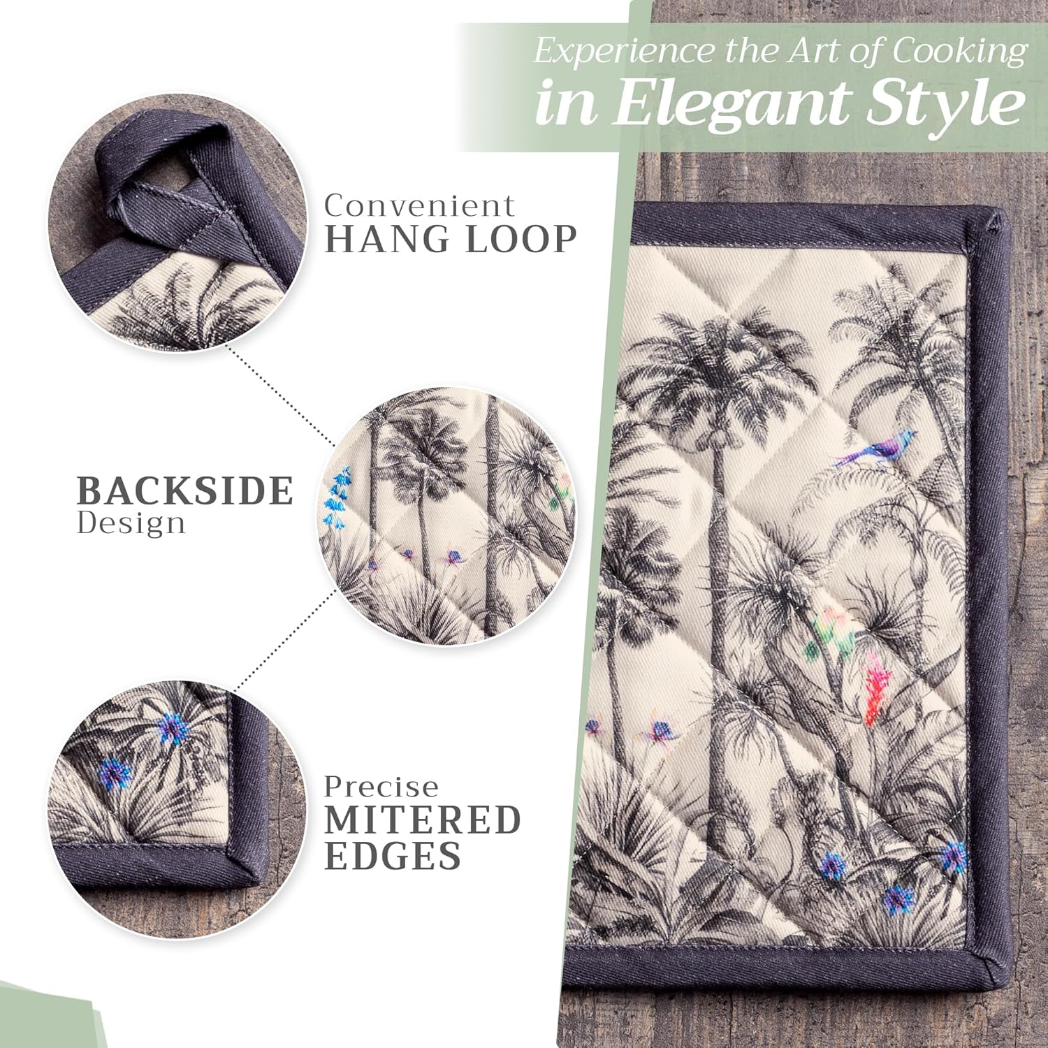 Maison d' Hermine Pot Holders Set 100% Cotton Heat Resistant Potholders 8" x 8" Hot Pads with Loop BBQ, Cooking, Baking, Grilling, Kitchen, Handling Hot Pans (Pack of 2, Amazonia)