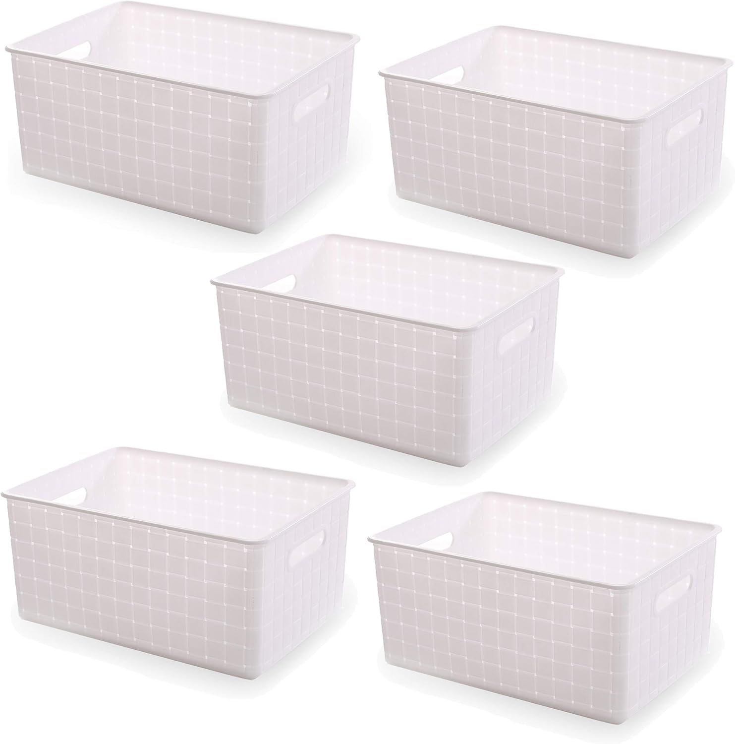 BINO Plastic Basket, Small White, 5 Pack - Rectangular Cabinet Organizer, Multi-Use Storage Basket, Drawer and Cabinet-Friendly, Portable, Durable, Space Efficiency, Stock Management